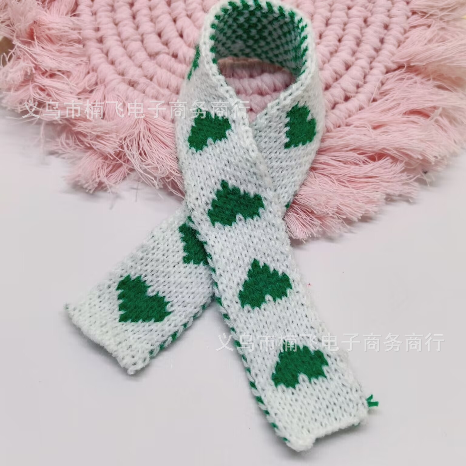 scarf-peach heart style green (white peach heart)
