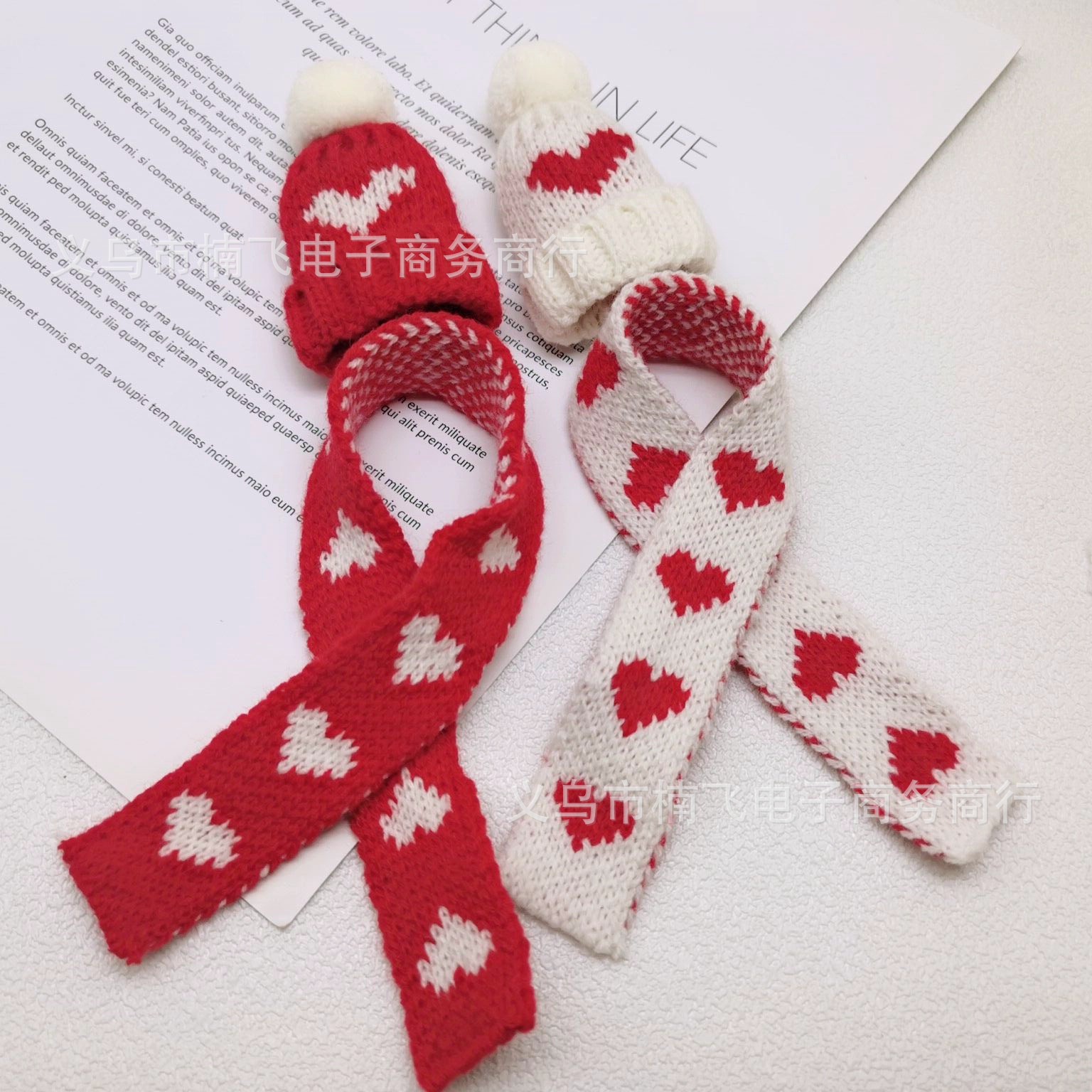 scarf-peach heart style white (red heart)