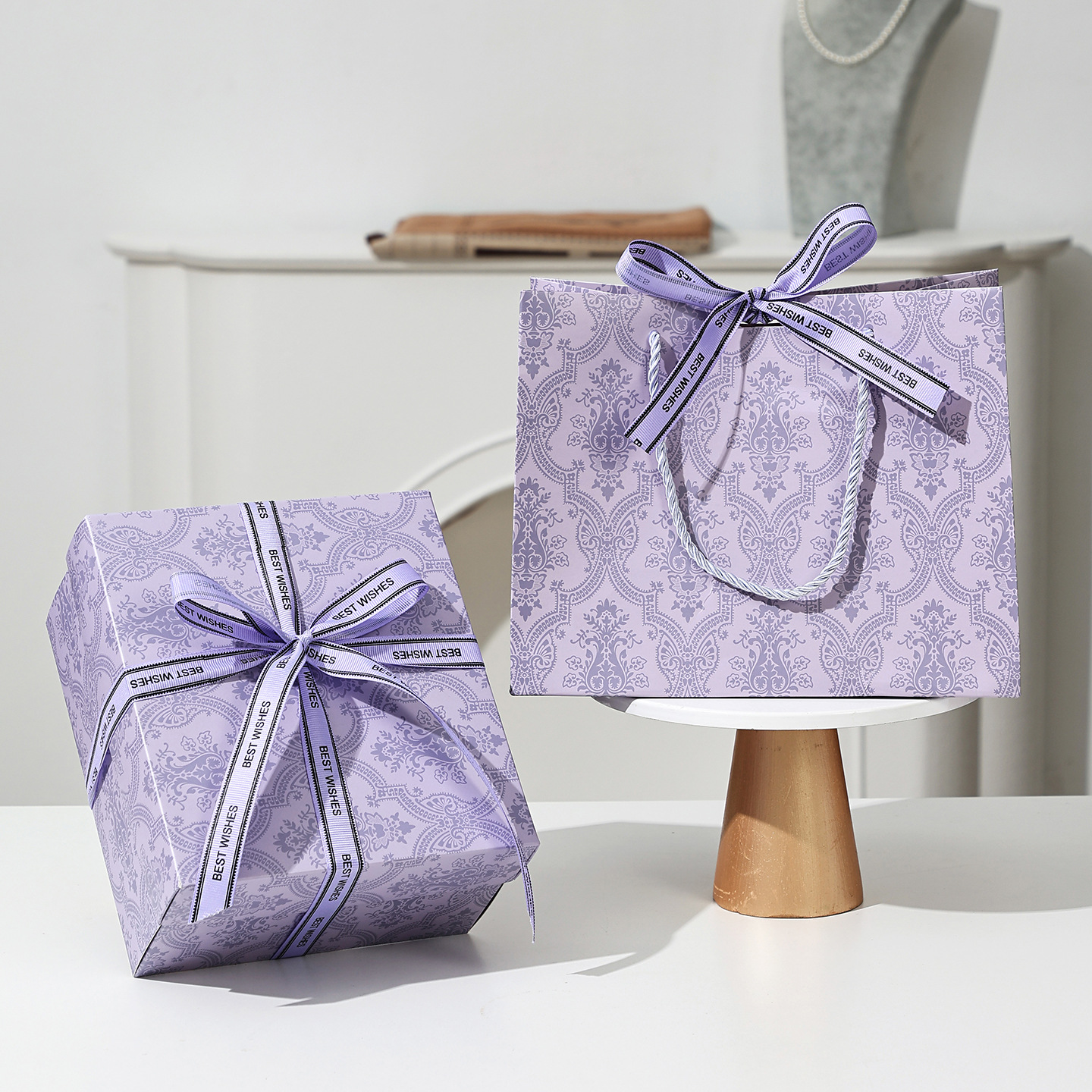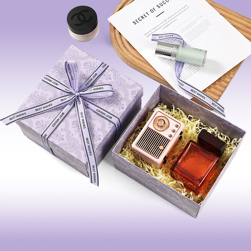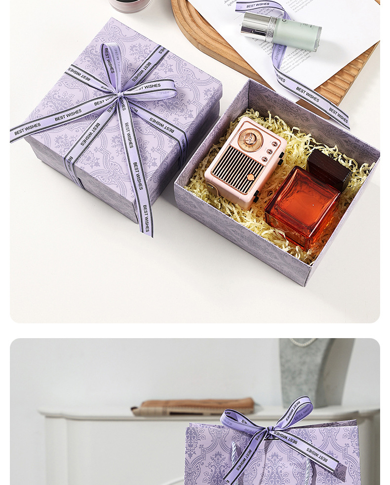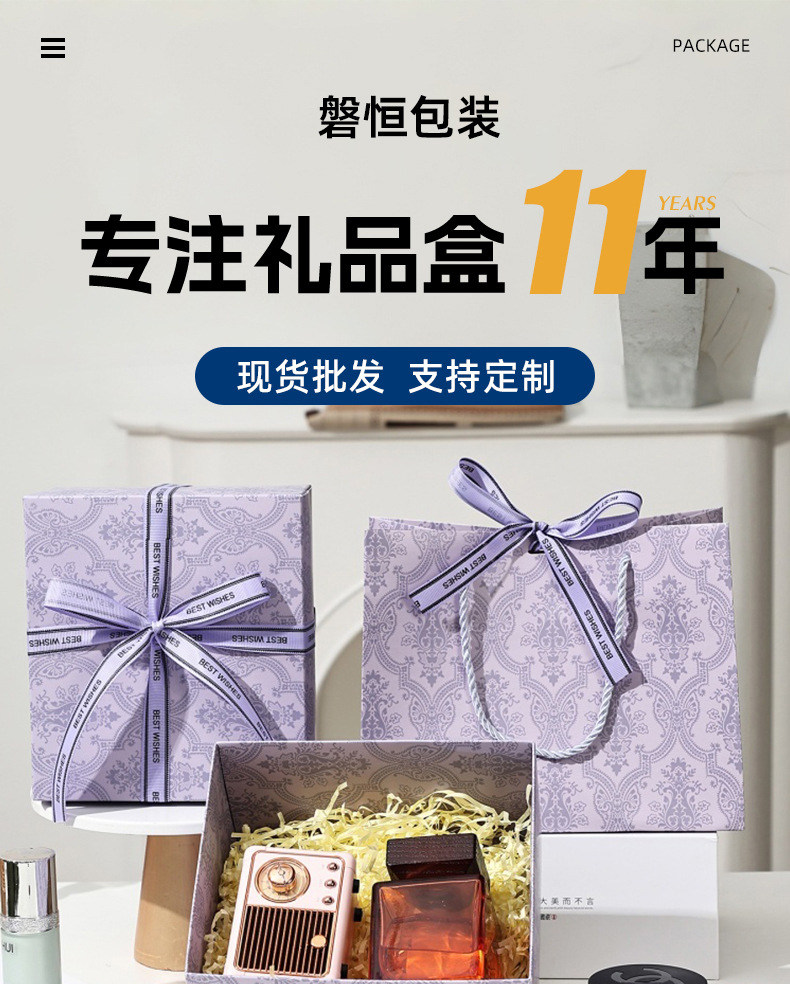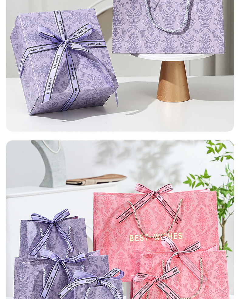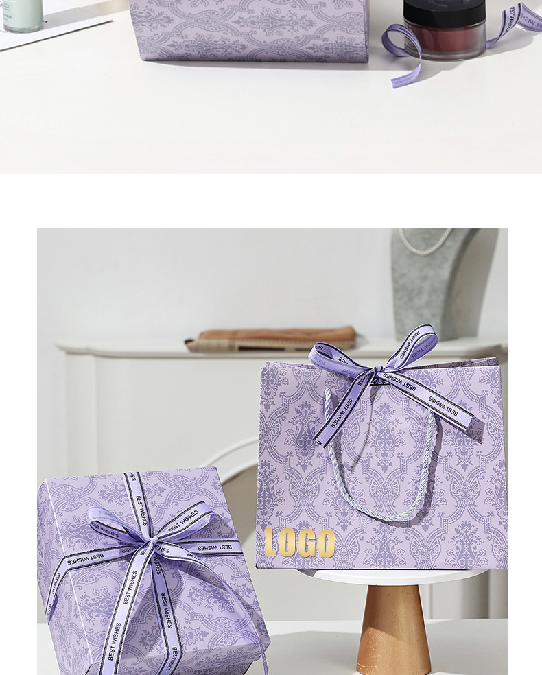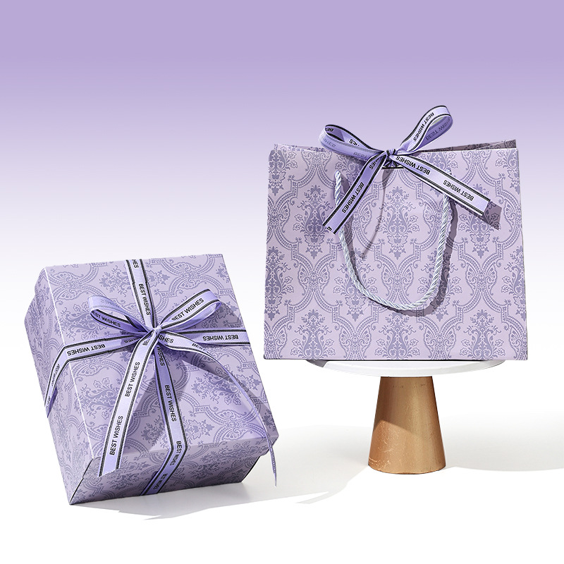 set [light luxury purple] gift box + gift bag + raffia; medium