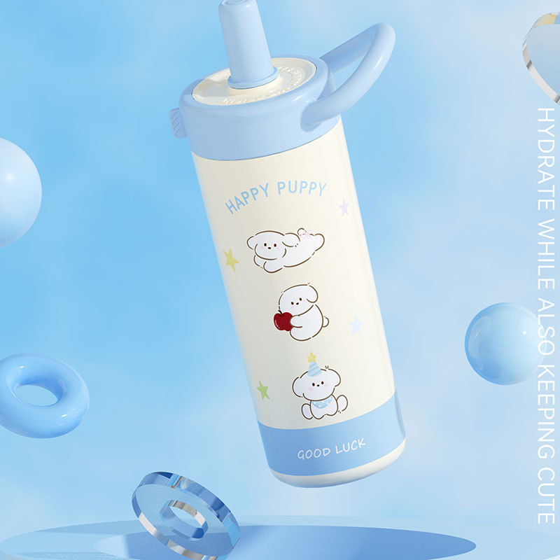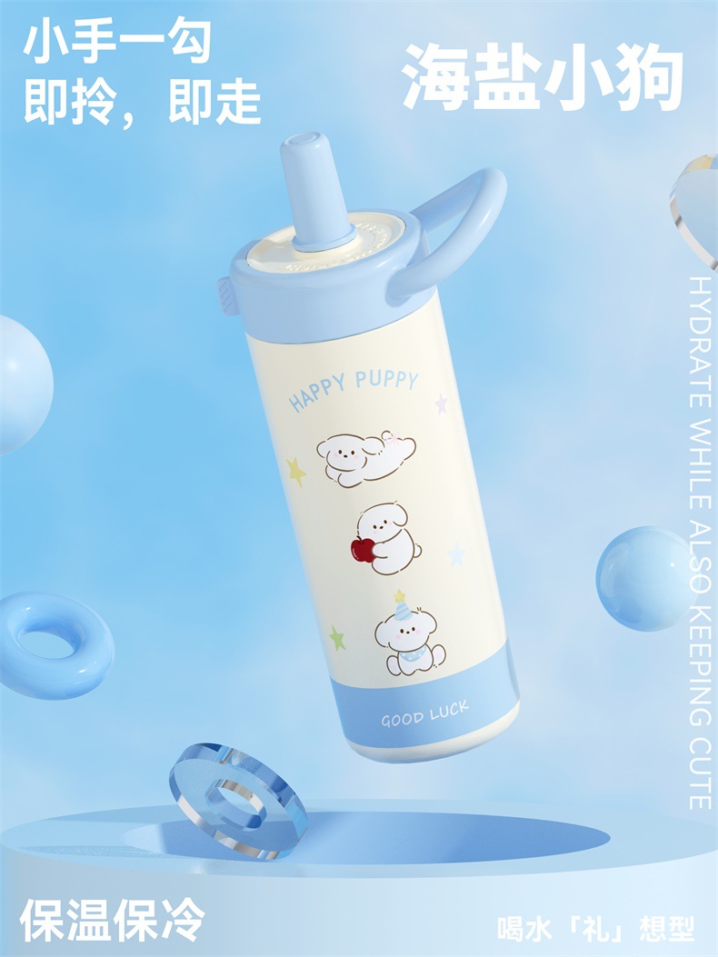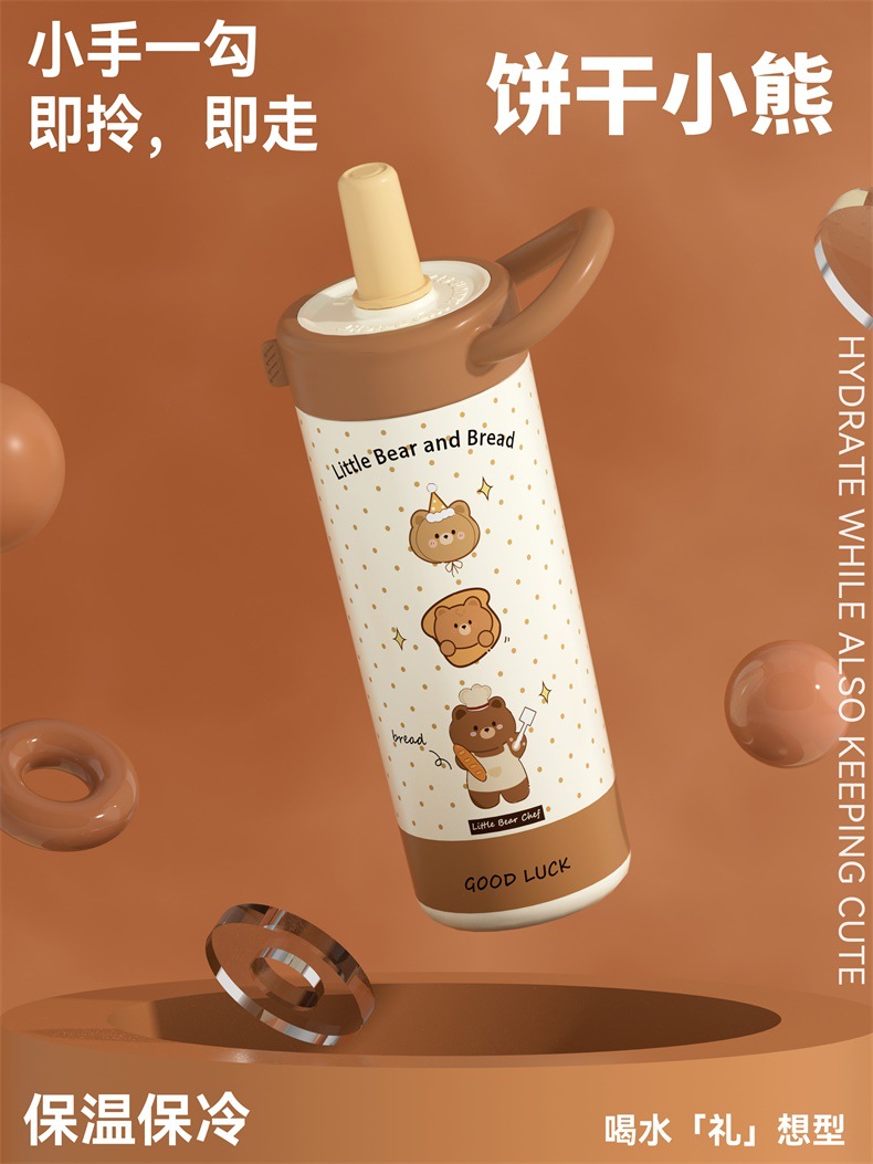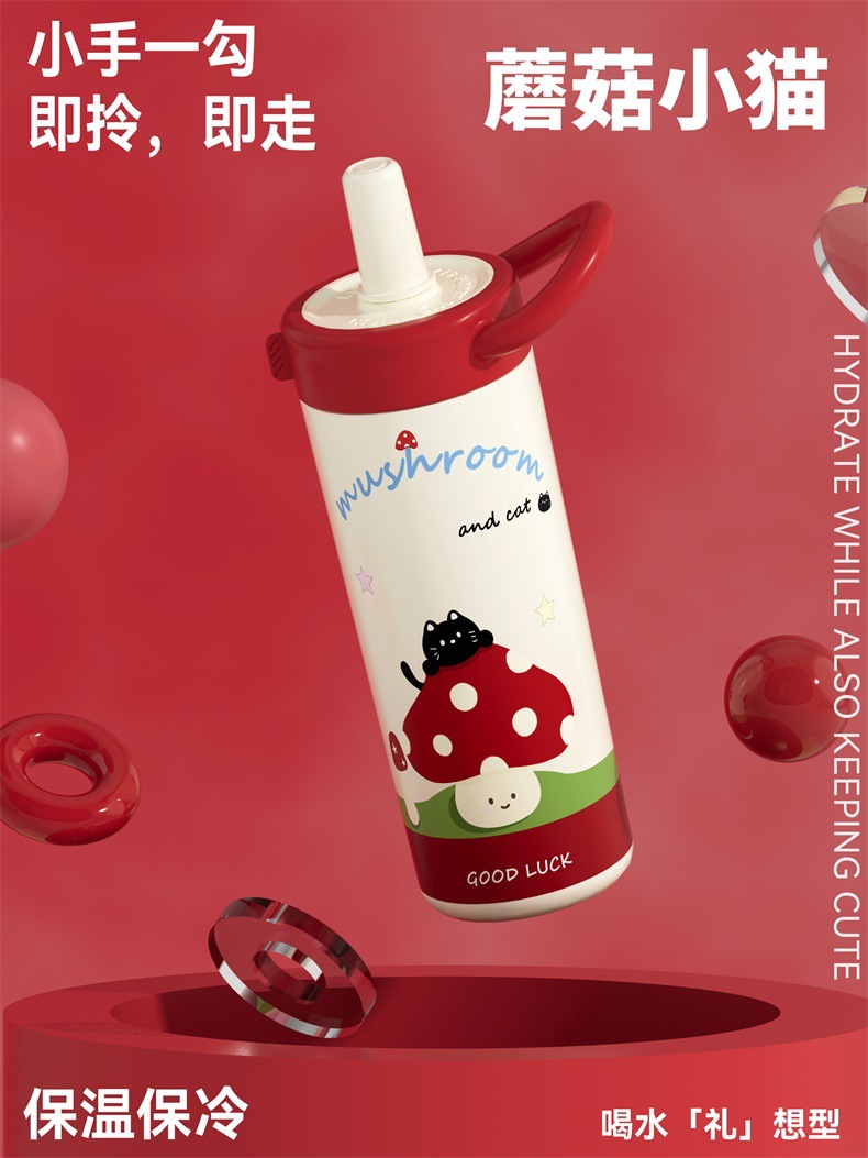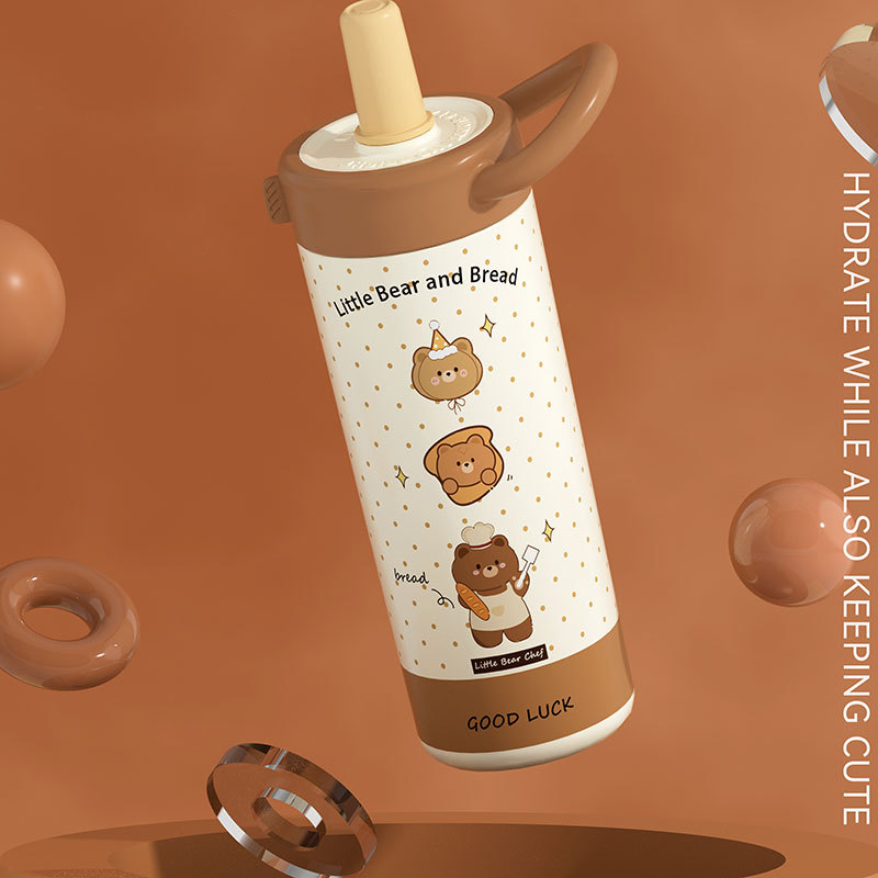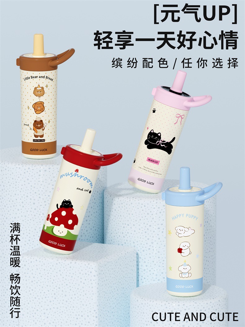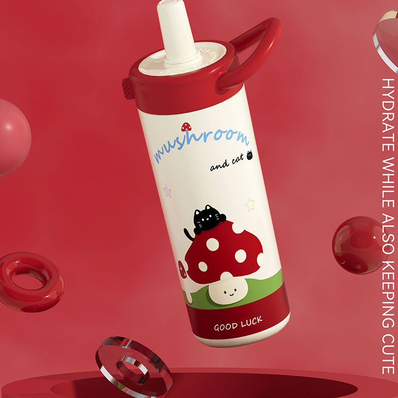 large-capacity 304 stainless steel cute good-looking cartoon cup for girls outdoor portable straw cup sports water bottle