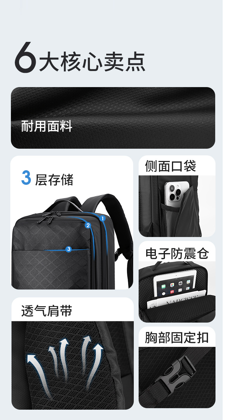 urban commuter computer backpack casual large capacity usb backpack breathable burden-reducing schoolbag
