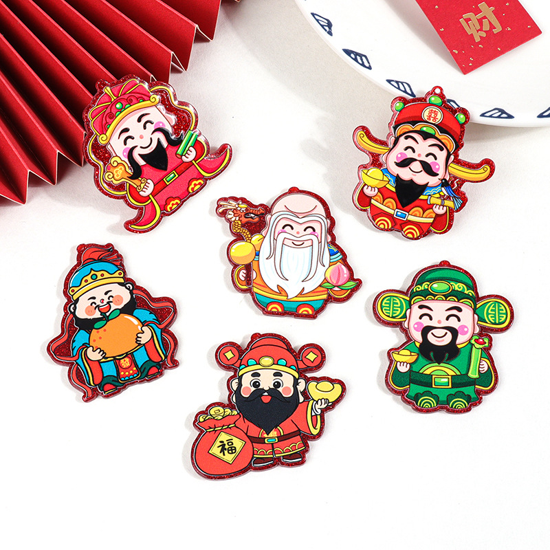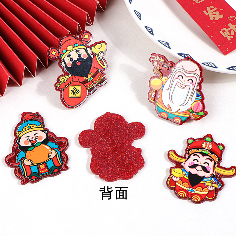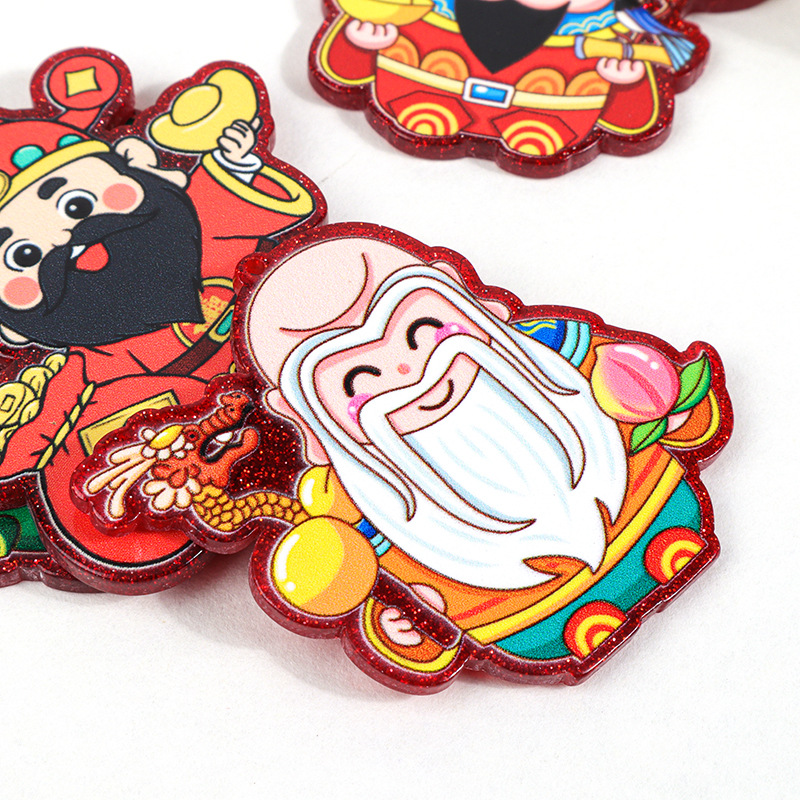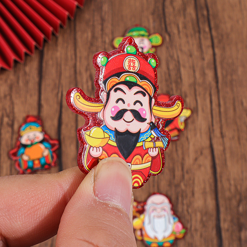 new year auspicious acrylic three-dimensional patch god of wealth fu lu shou diy chinese new year decoration phone case hair accessories