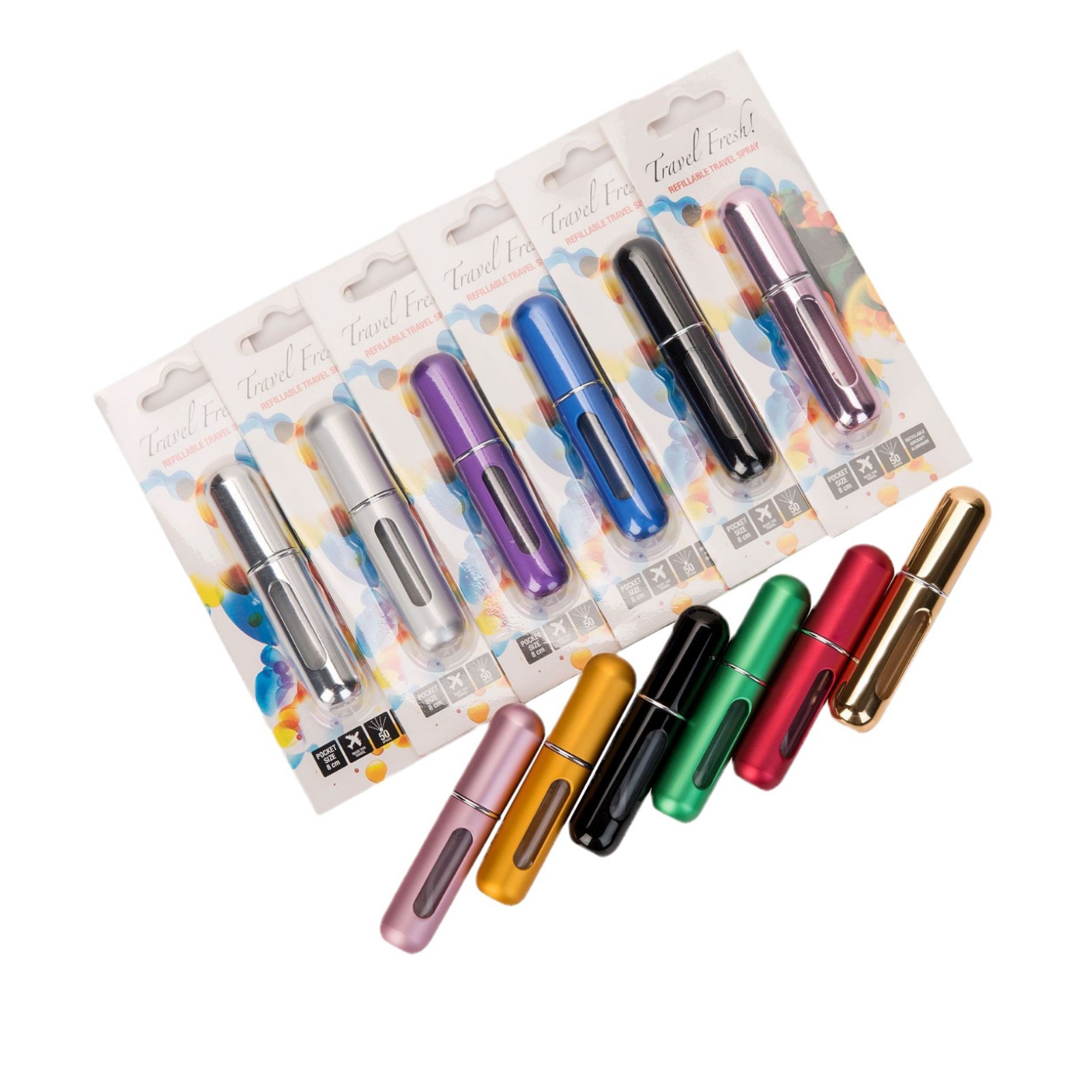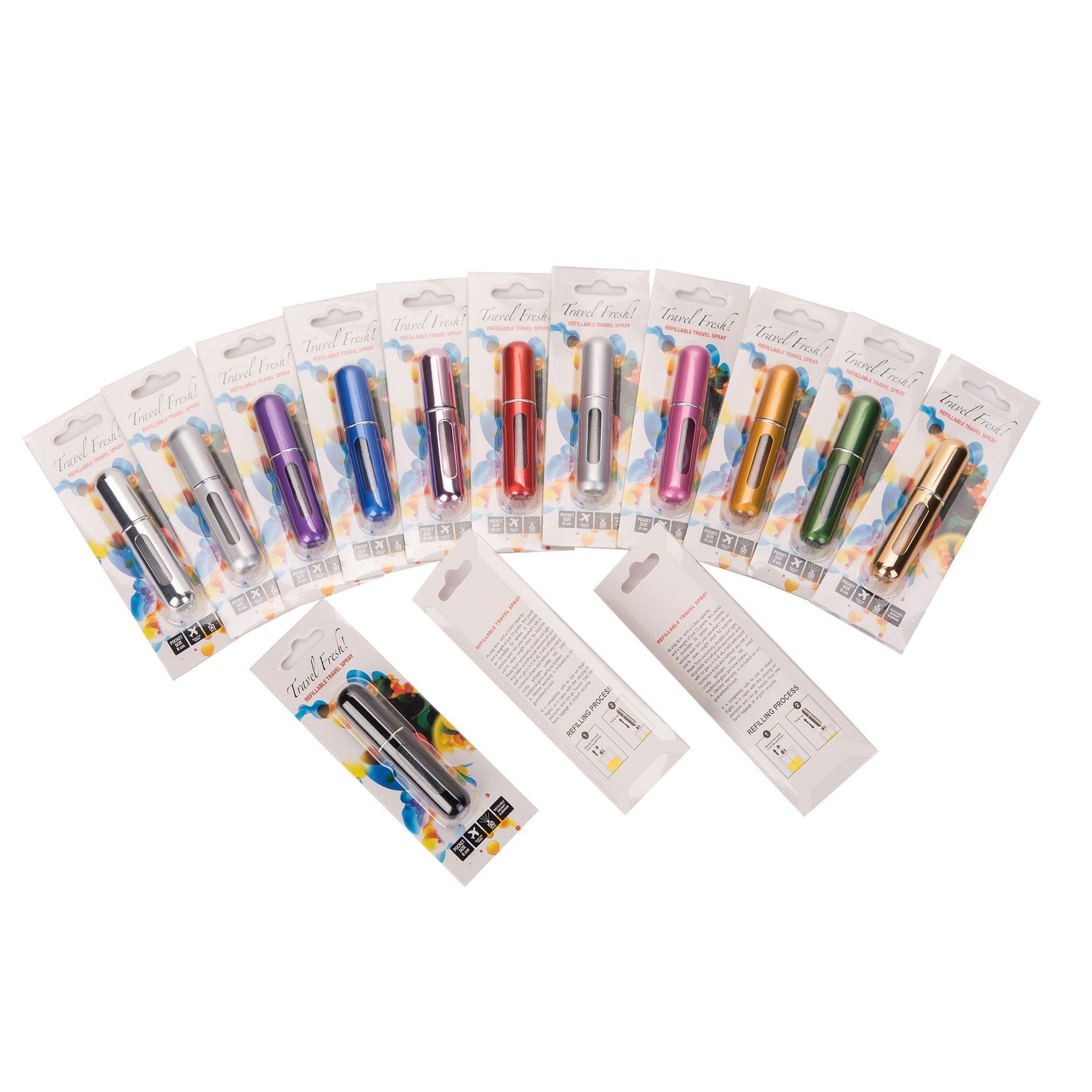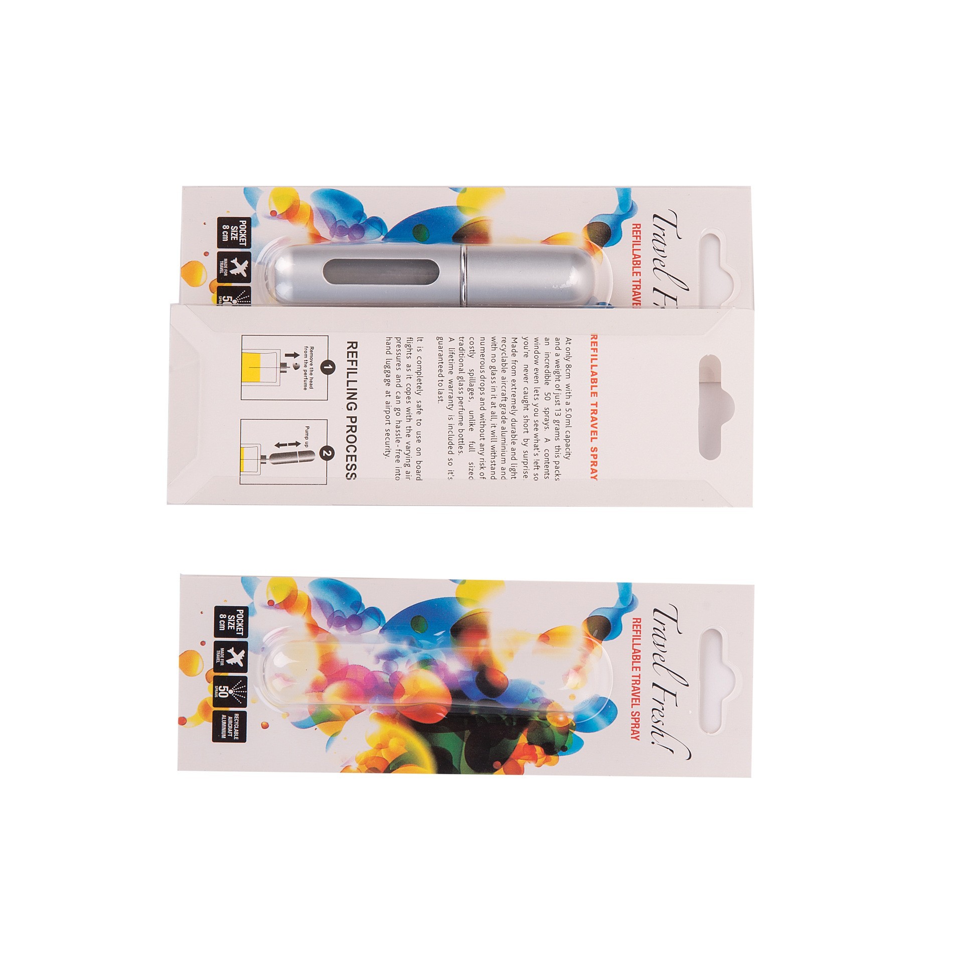 5ml round window bottom charging + blister card; silver; plastic