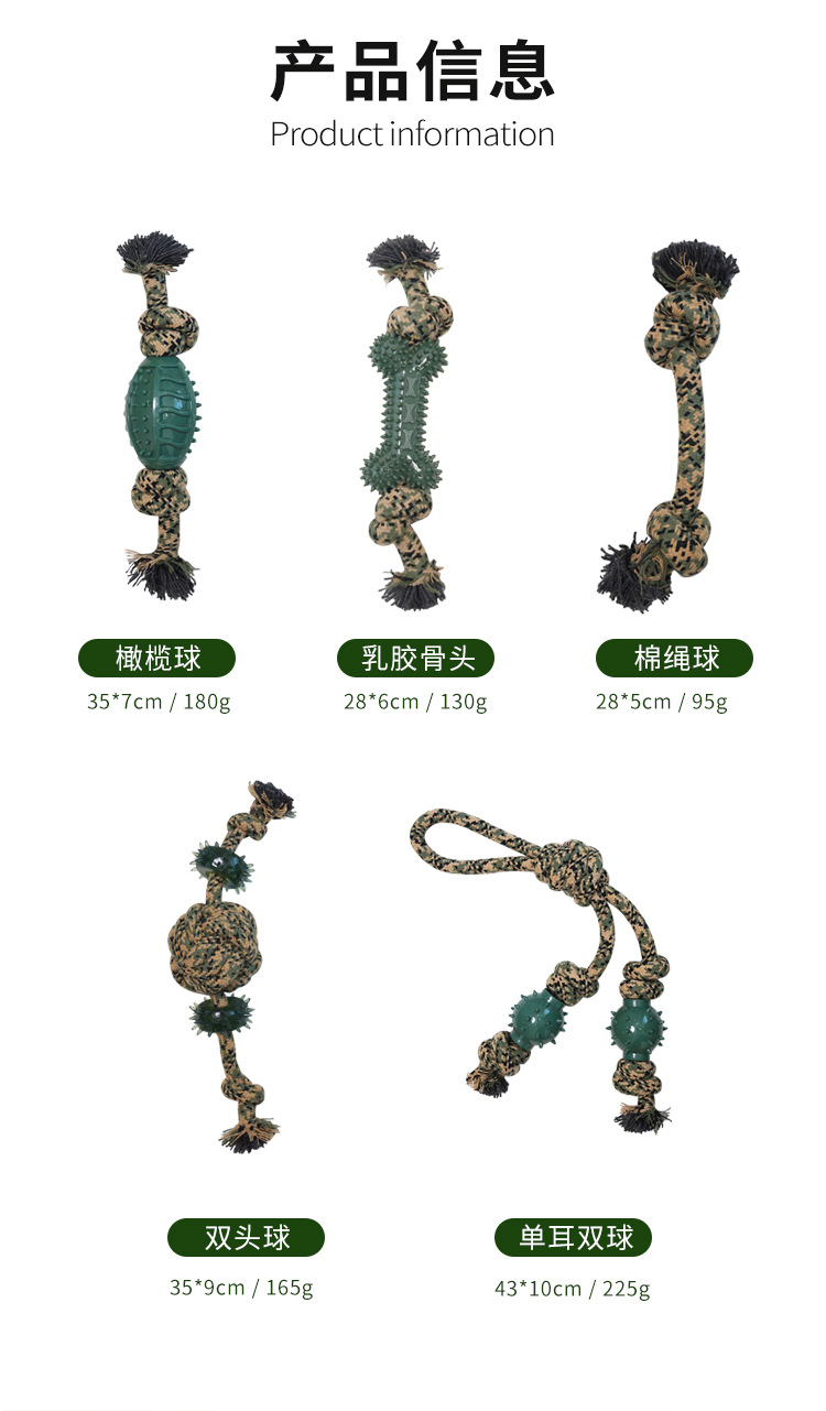 camouflage rope toy-latex bowling