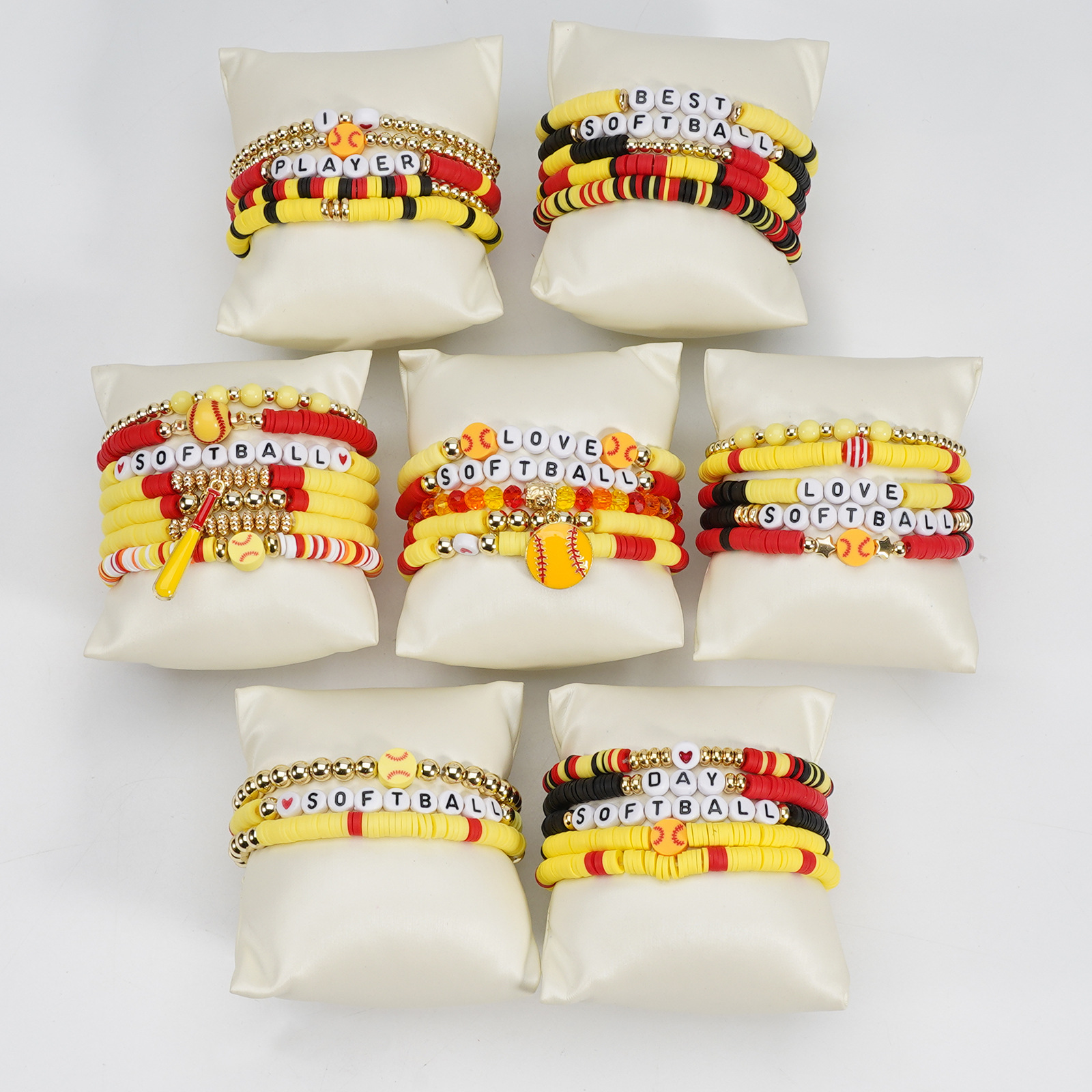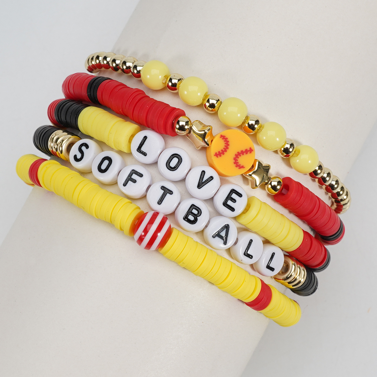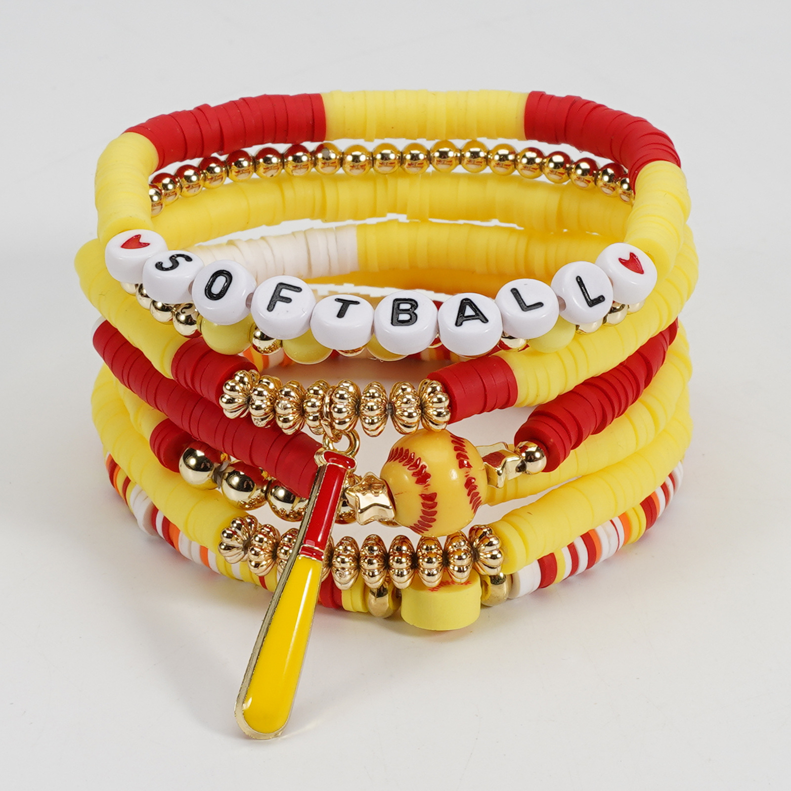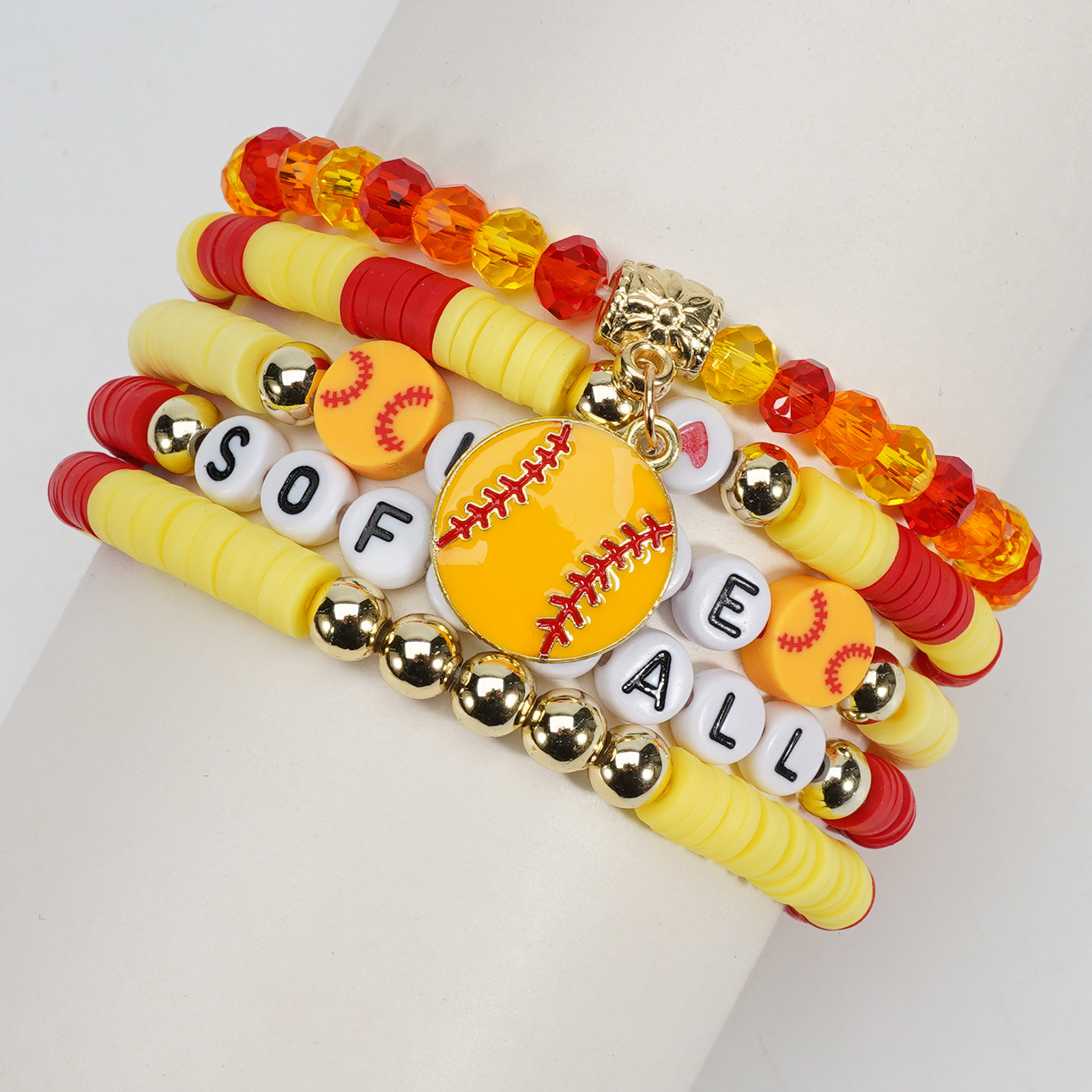 Softball Bracelet, Game Day Bracelet, Sports Beaded Elastic Multi-Layer Cross-Border Bracelet Wholesaling