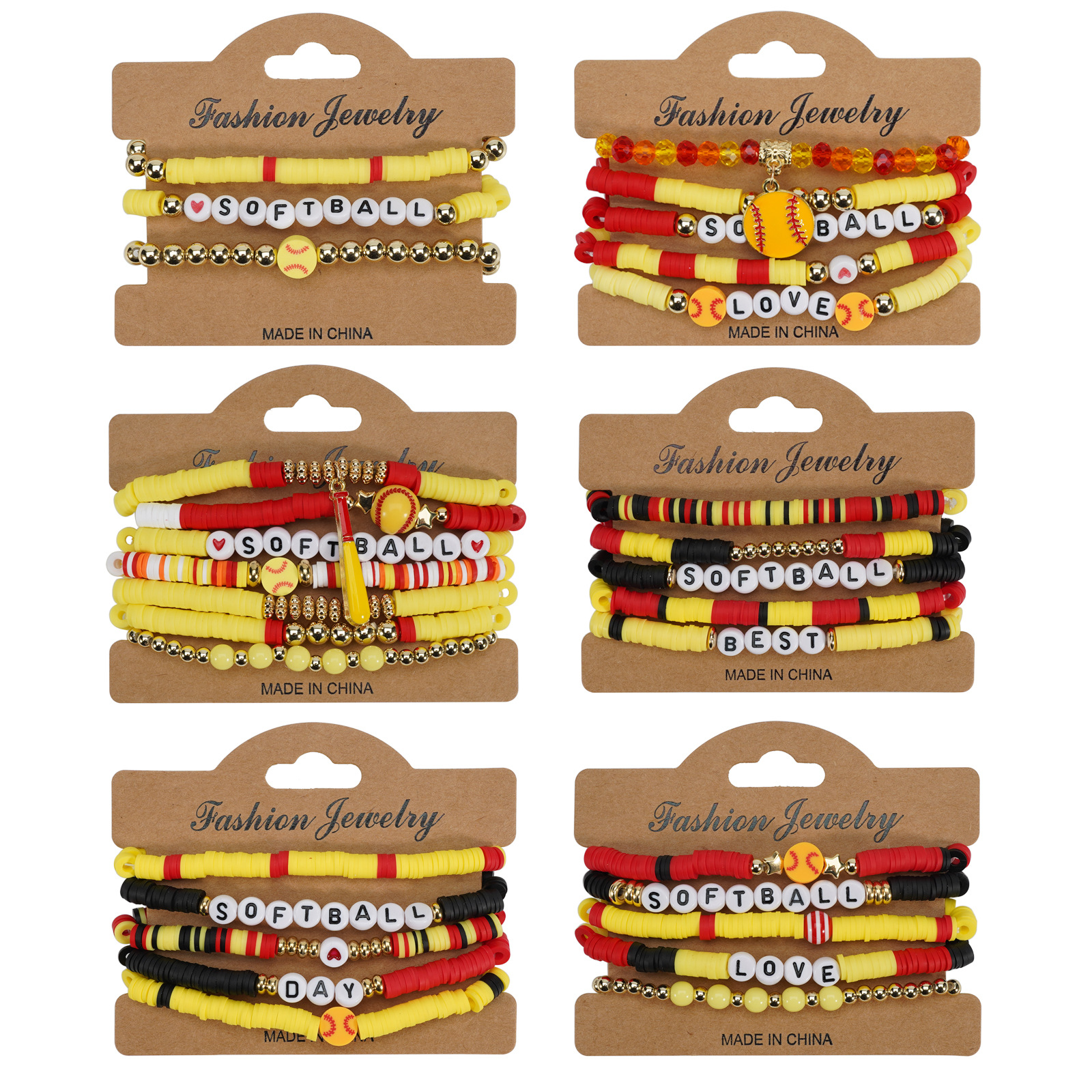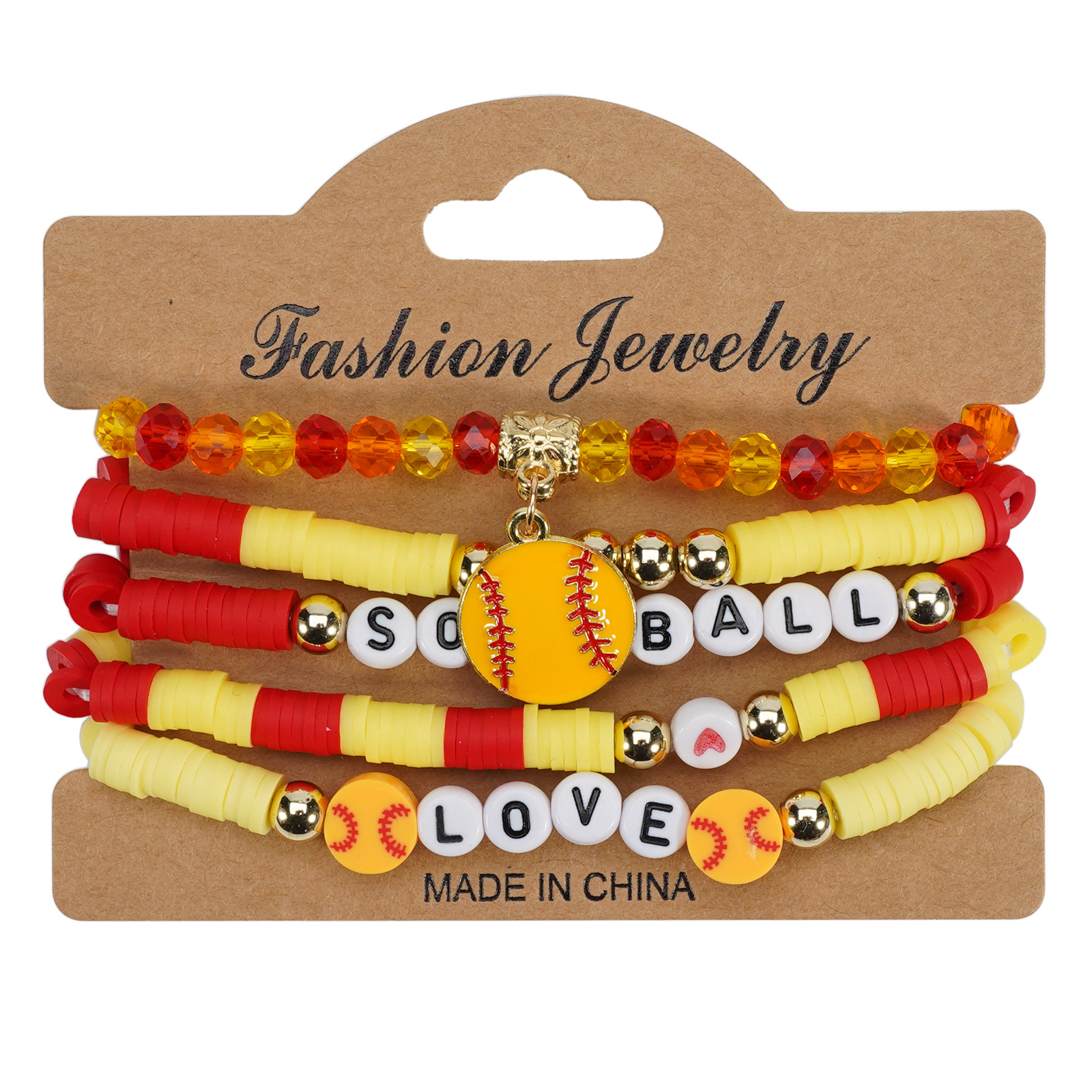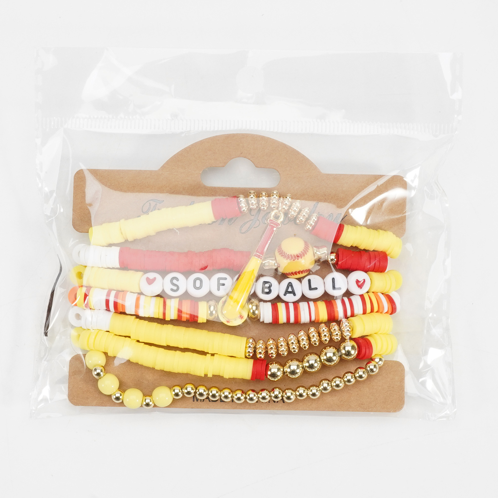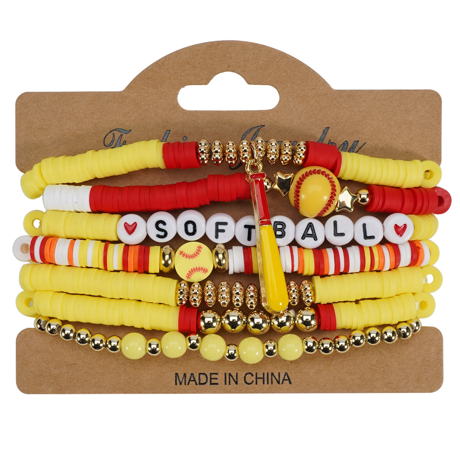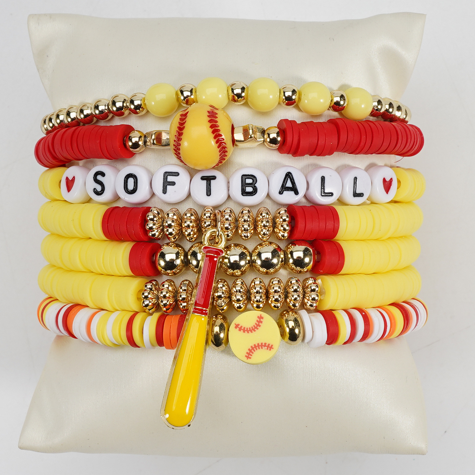 Softball Bracelet, Game Day Bracelet, Sports Beaded Elastic Multi-Layer Cross-Border Bracelet Wholesaling