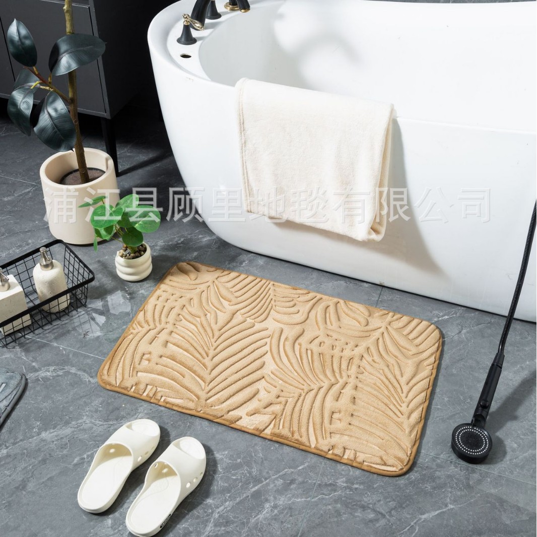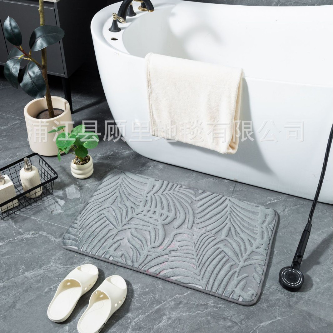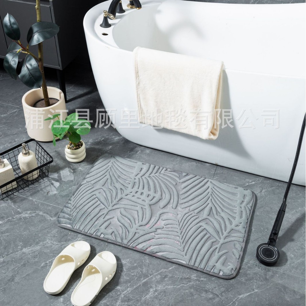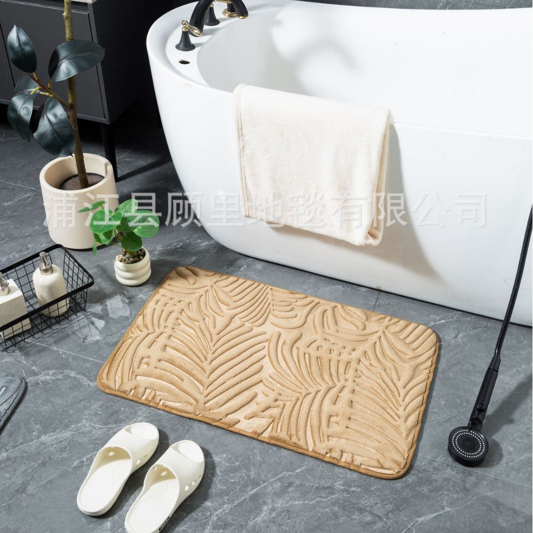 super three-dimensional embossed absorbent carpet bathroom entry door light luxury non-slip mat quick-drying foot mat leaves factory direct sales