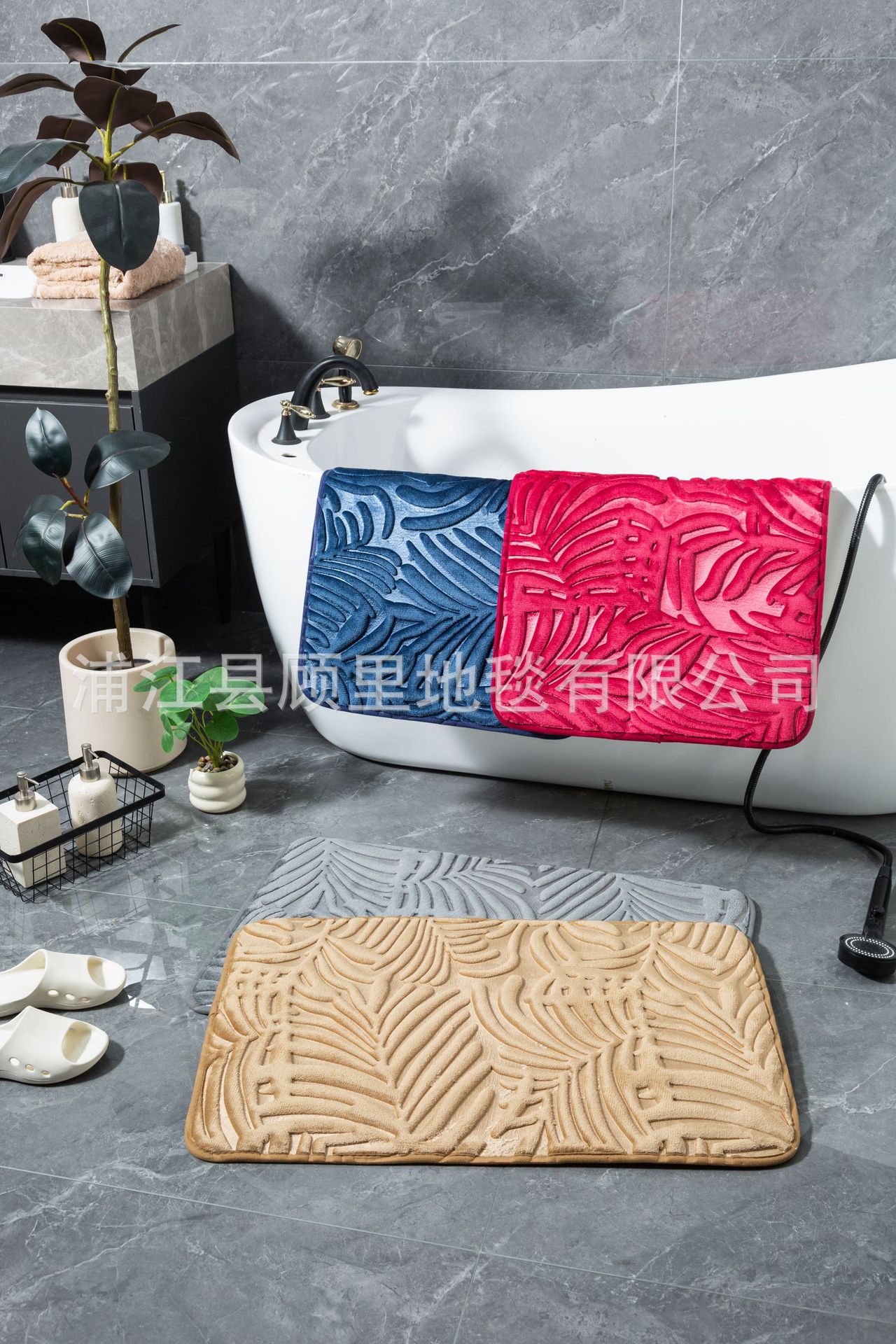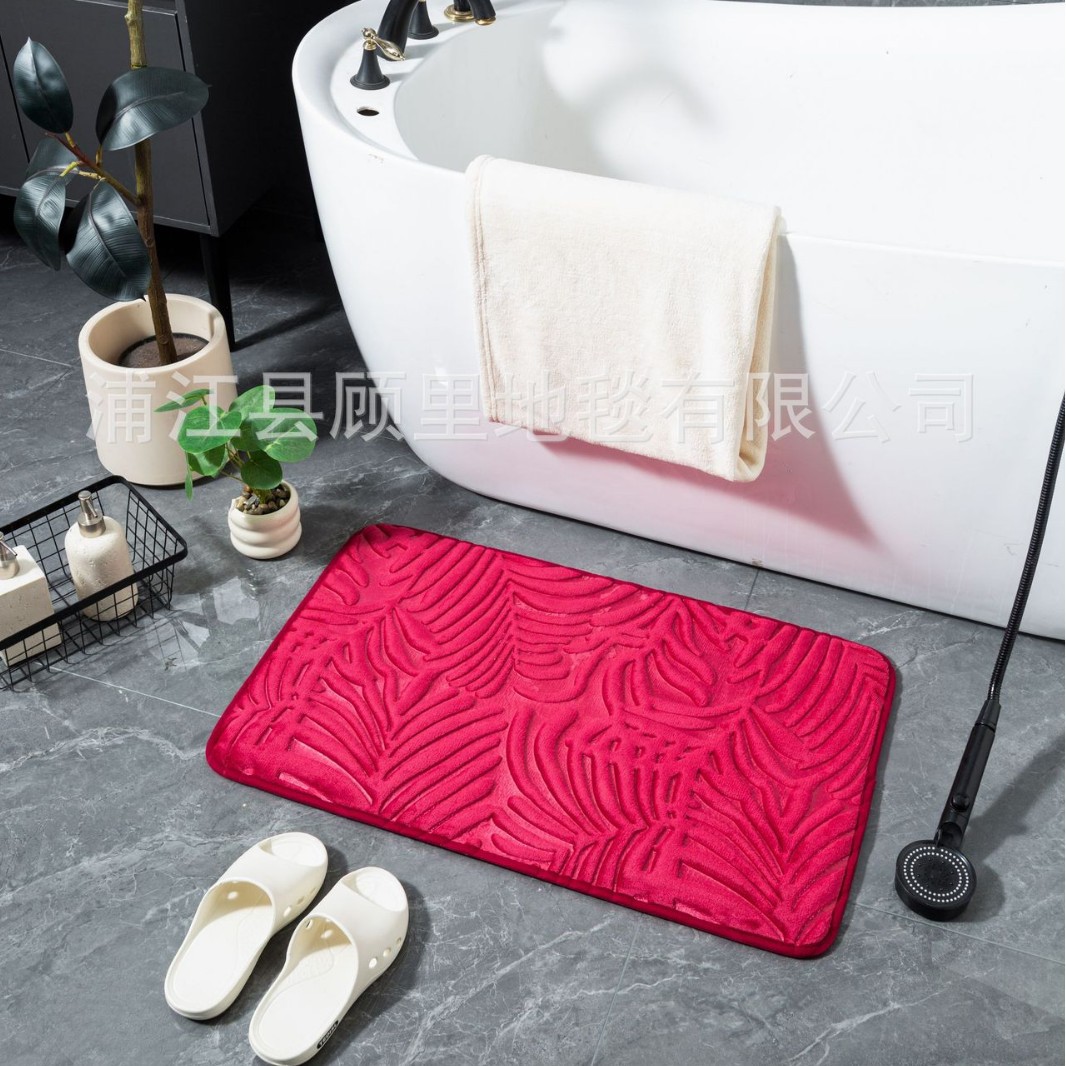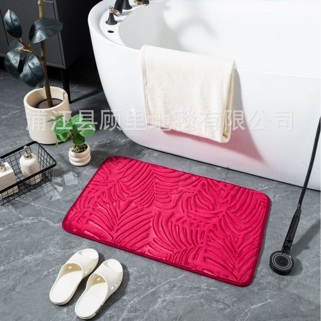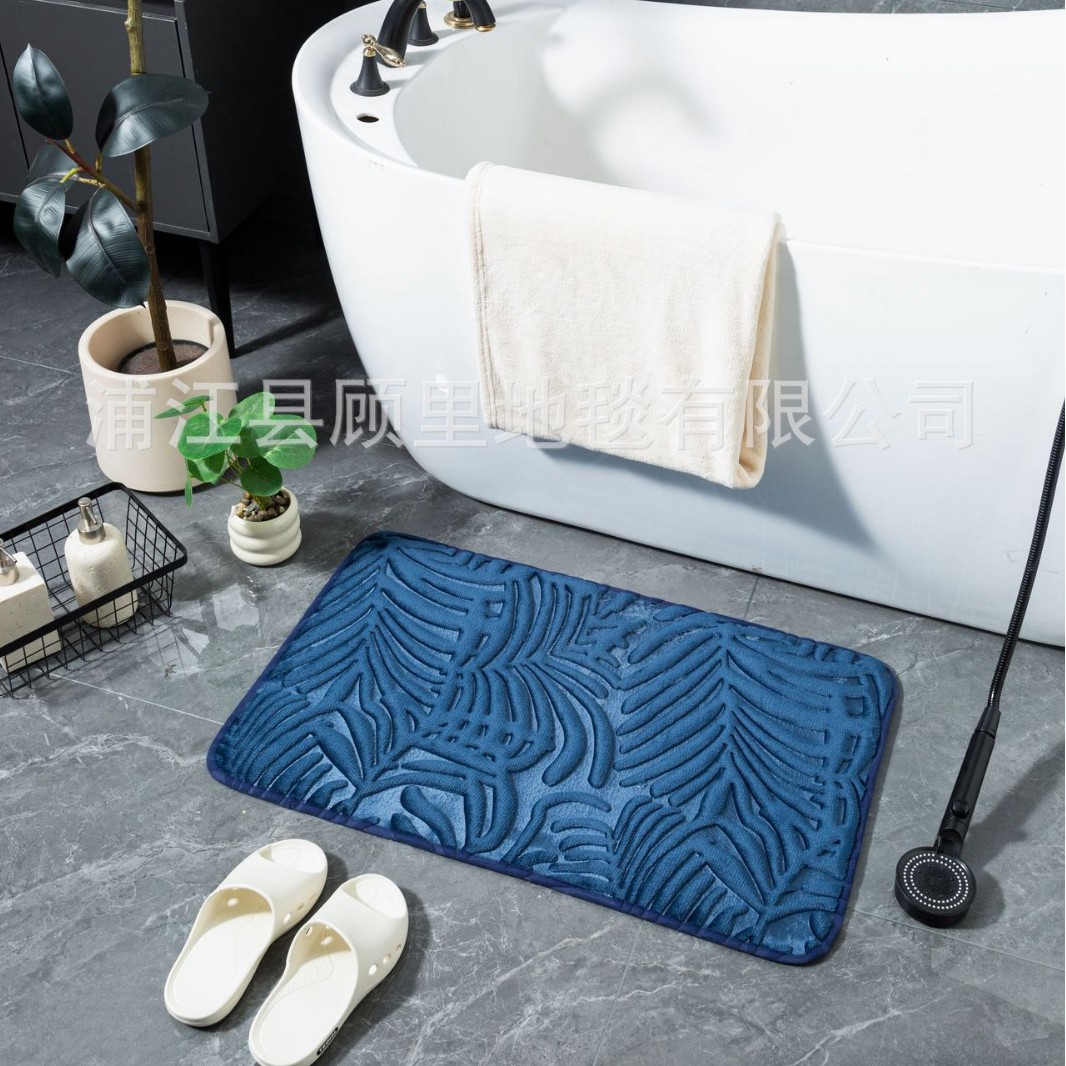 super three-dimensional embossed absorbent carpet bathroom entry door light luxury non-slip mat quick-drying foot mat leaves factory direct sales
