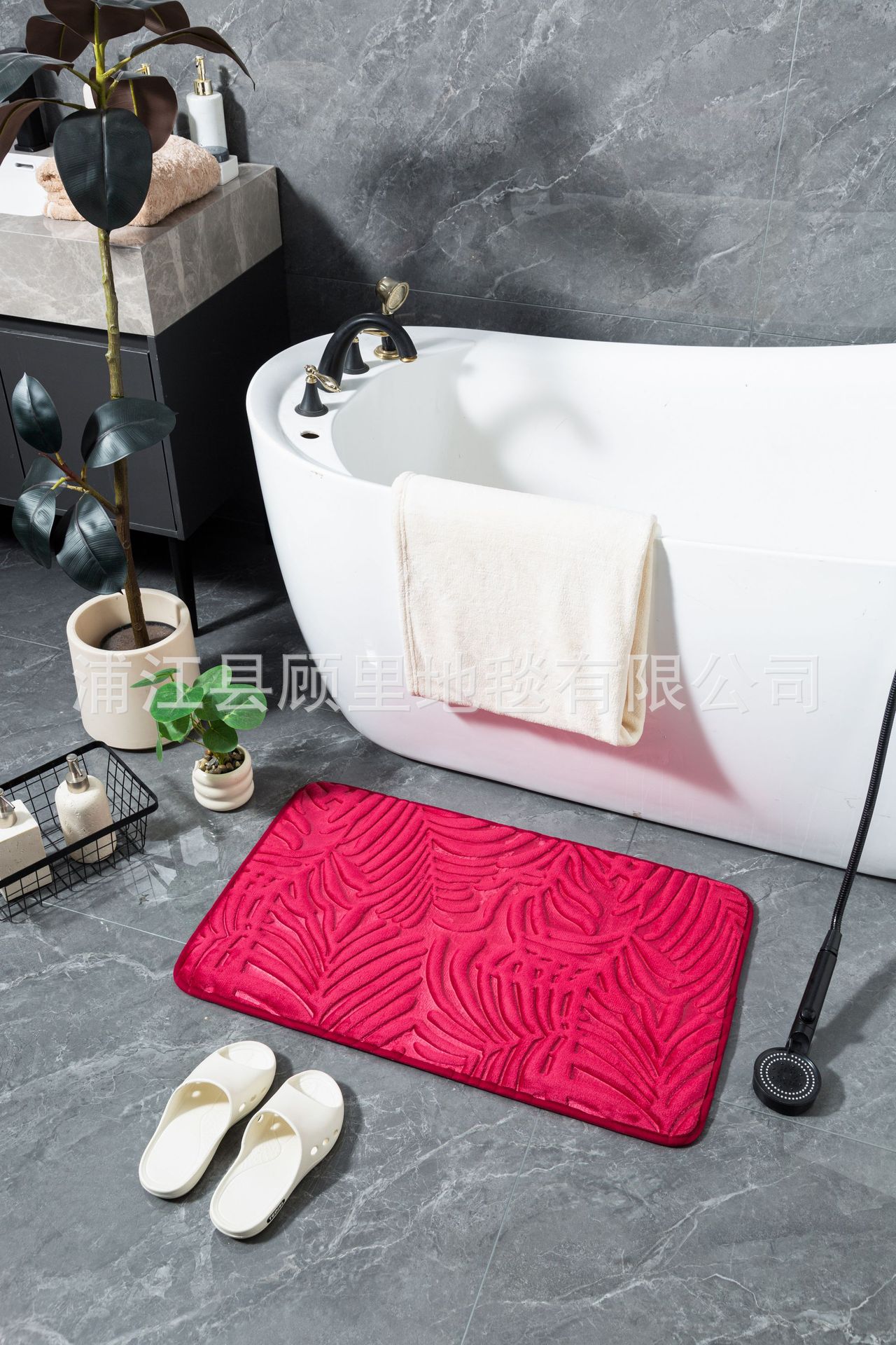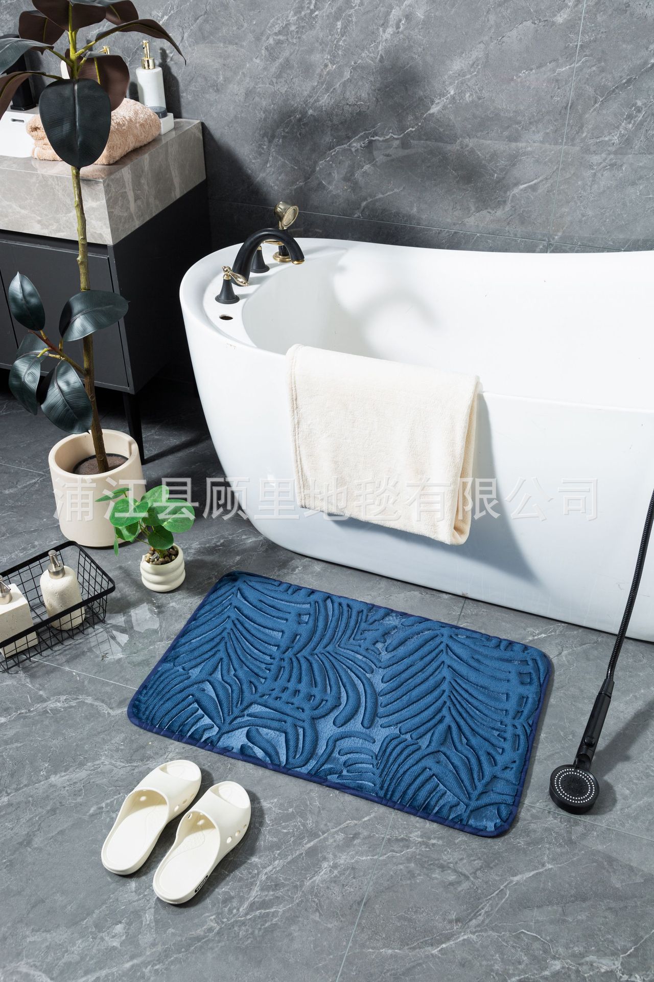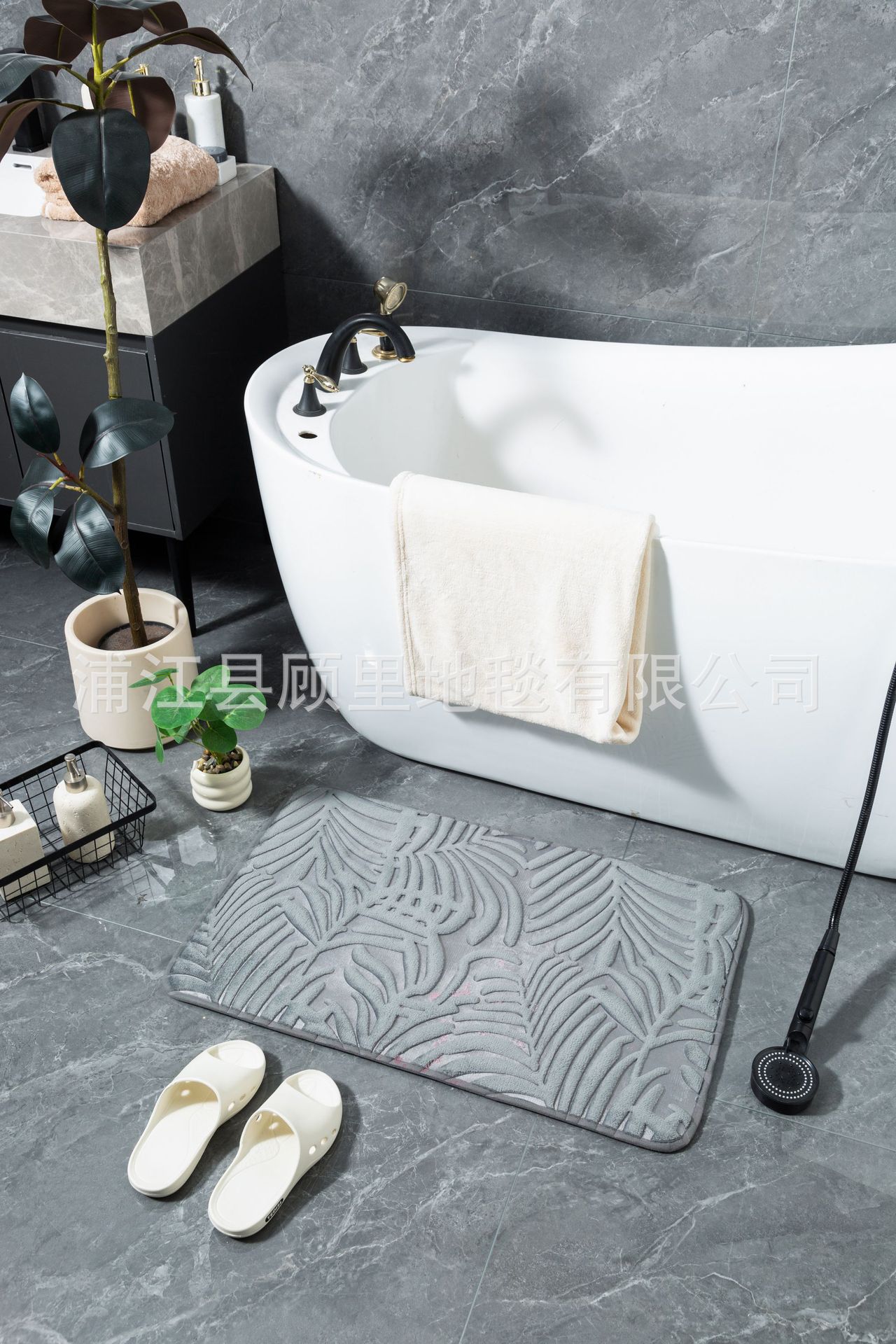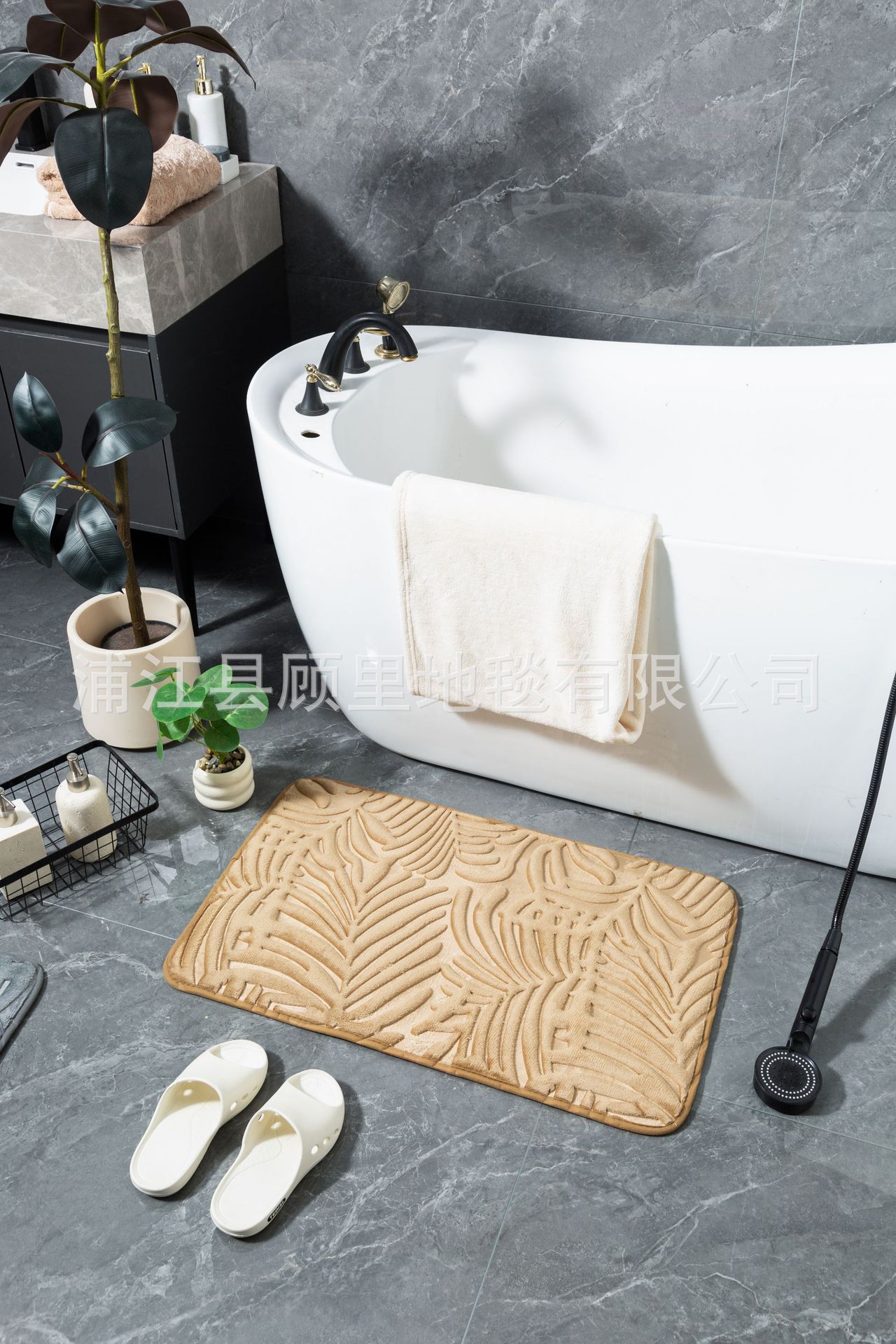 super three-dimensional embossed absorbent carpet bathroom entry door light luxury non-slip mat quick-drying foot mat leaves factory direct sales