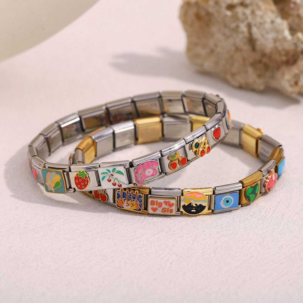 colorful oil necklace square pendant-steel-35-6