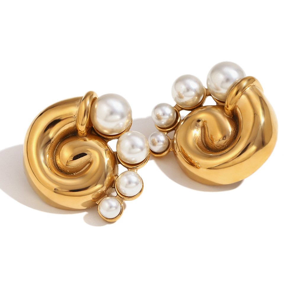 cast threaded swirl pearl earrings – gold color