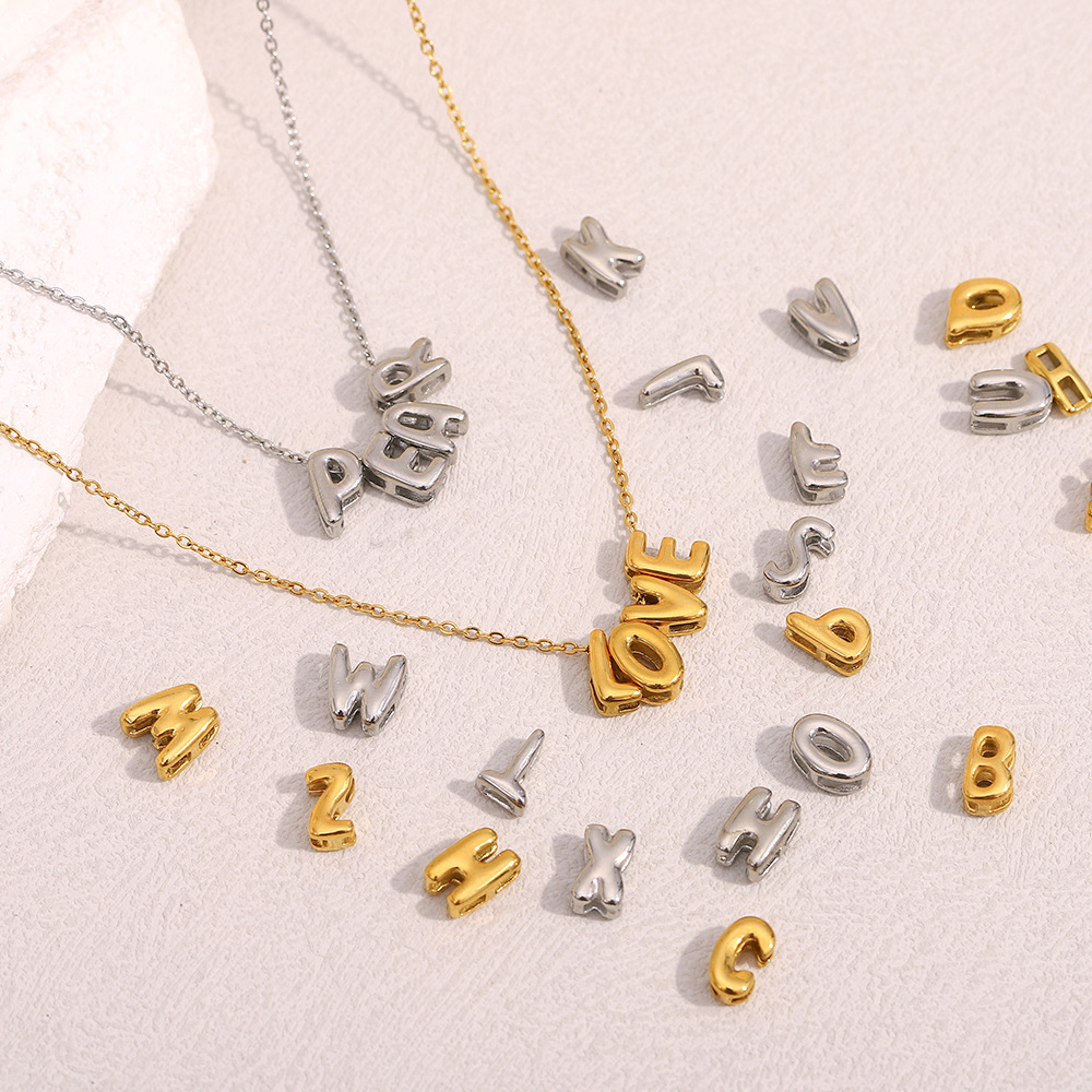 hollow small letter pendant necklace-steel color-x