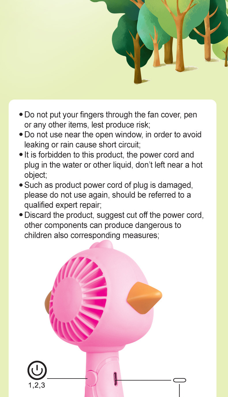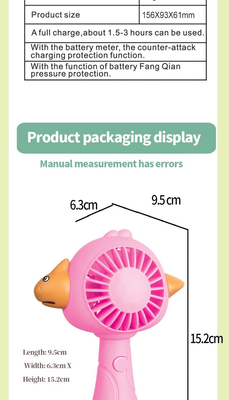 color: hq66-37 cartoon duck fish bird handheld fan 3 gear, h