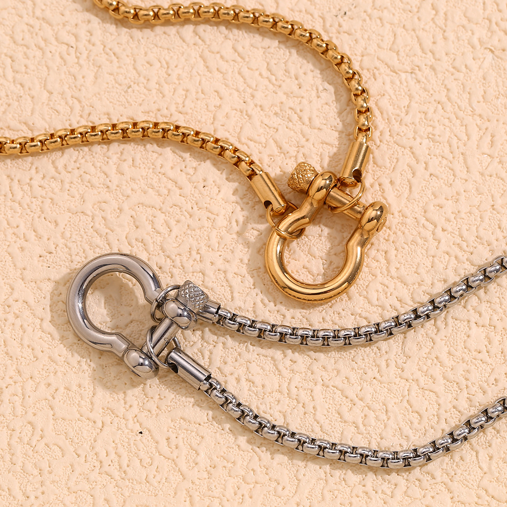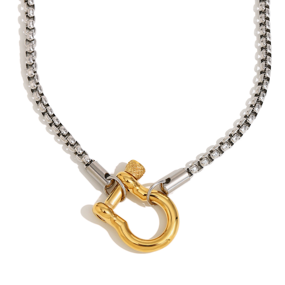 方珍珠链锁扣吊坠项链-钢色