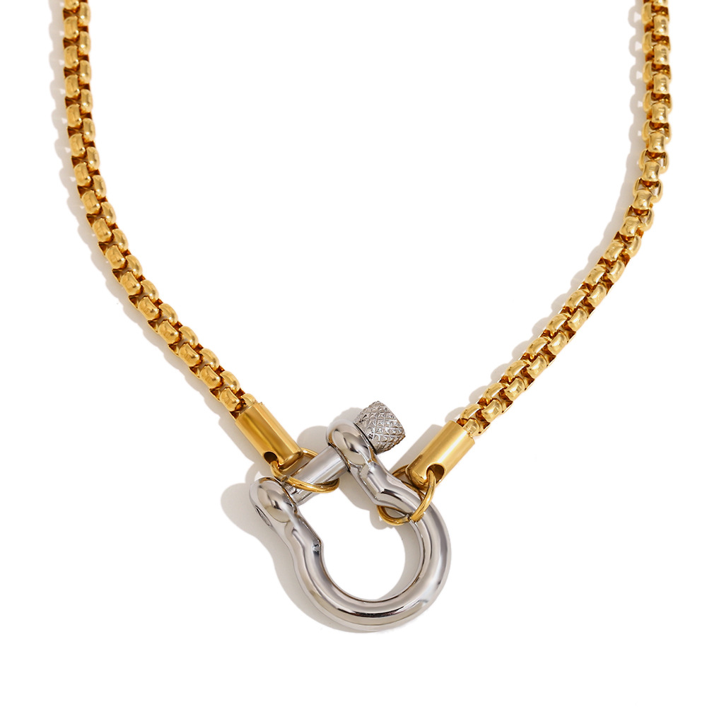 方珍珠链锁扣吊坠项链-双色2