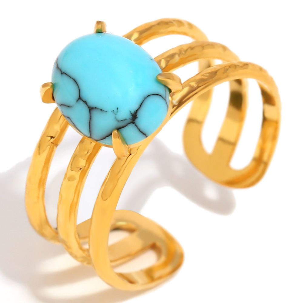 blue turquoise double layer open ring-gold