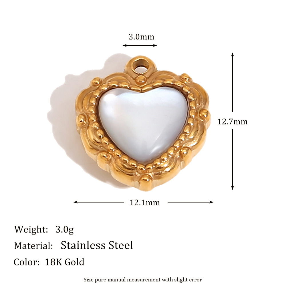 bead edge love heart white shell pendant-gold