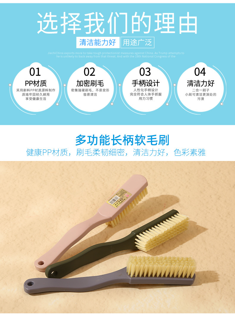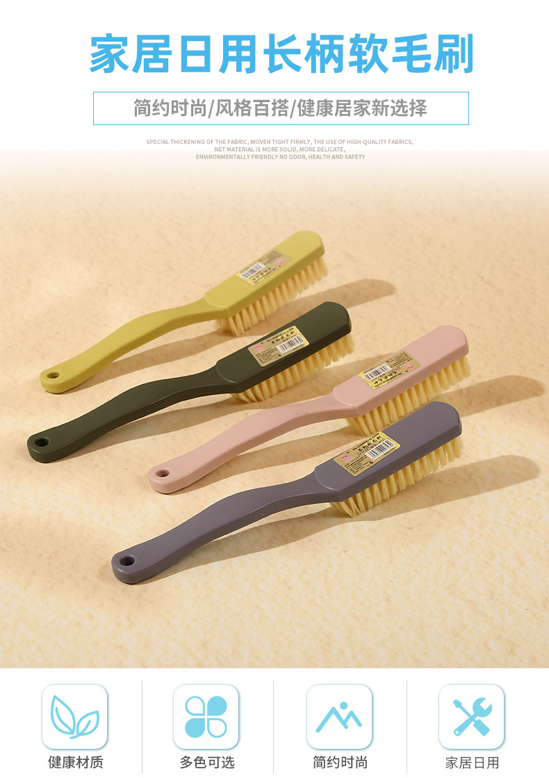household solid color long handle bristle plastic brush clothes cleaning brush cleaning brush laundry shoes special brush hanging