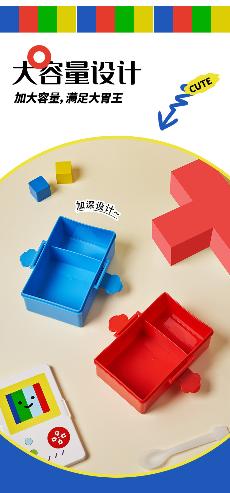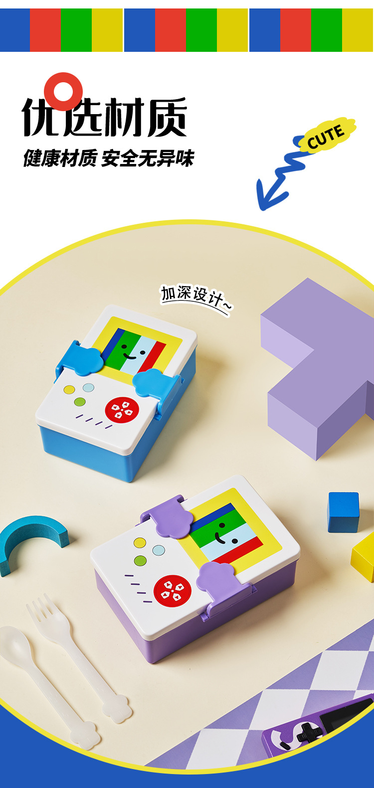 plastic pp cartoon game machine for children lunch box student microwave oven picnic crisper compartment food grade lunch box