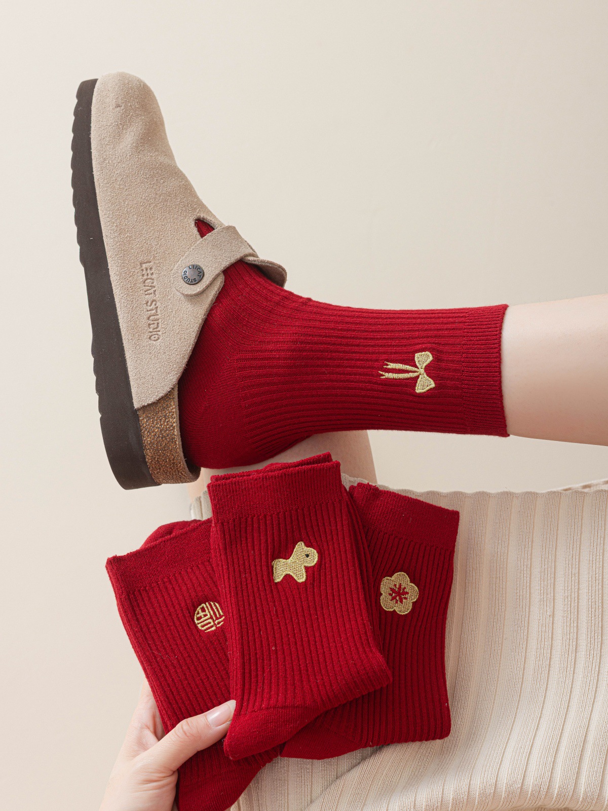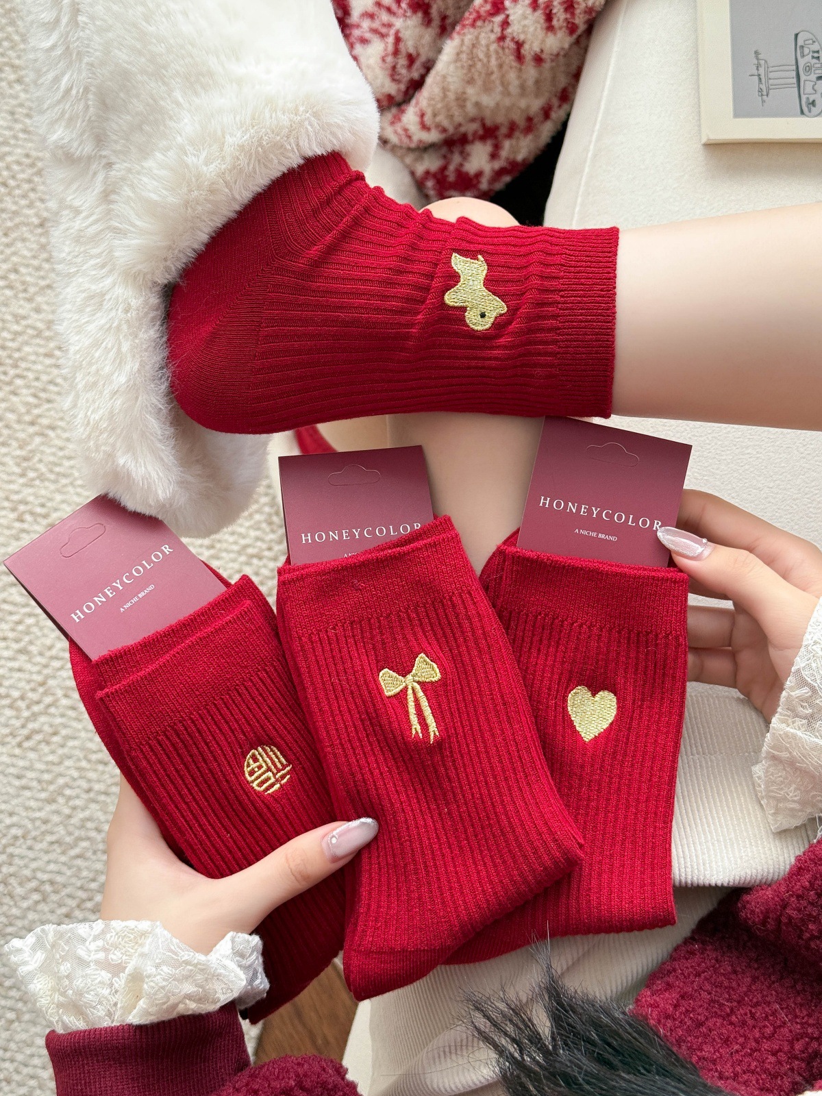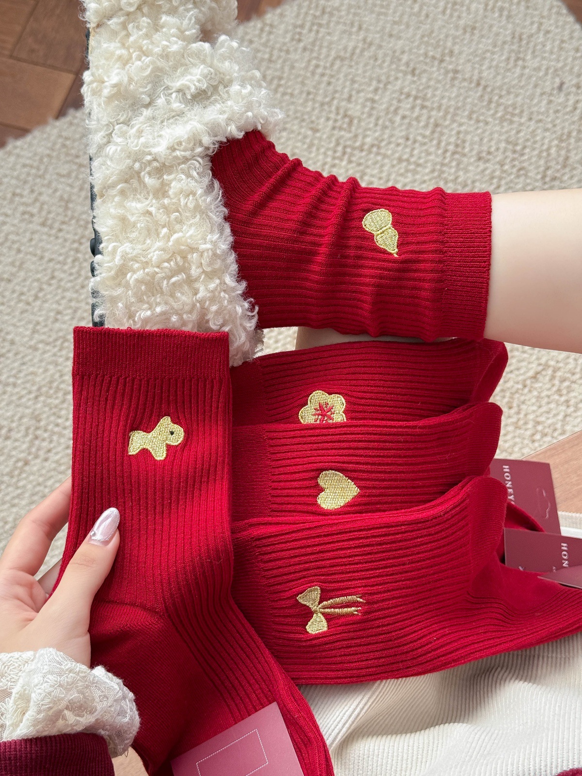 lucky character large red socks