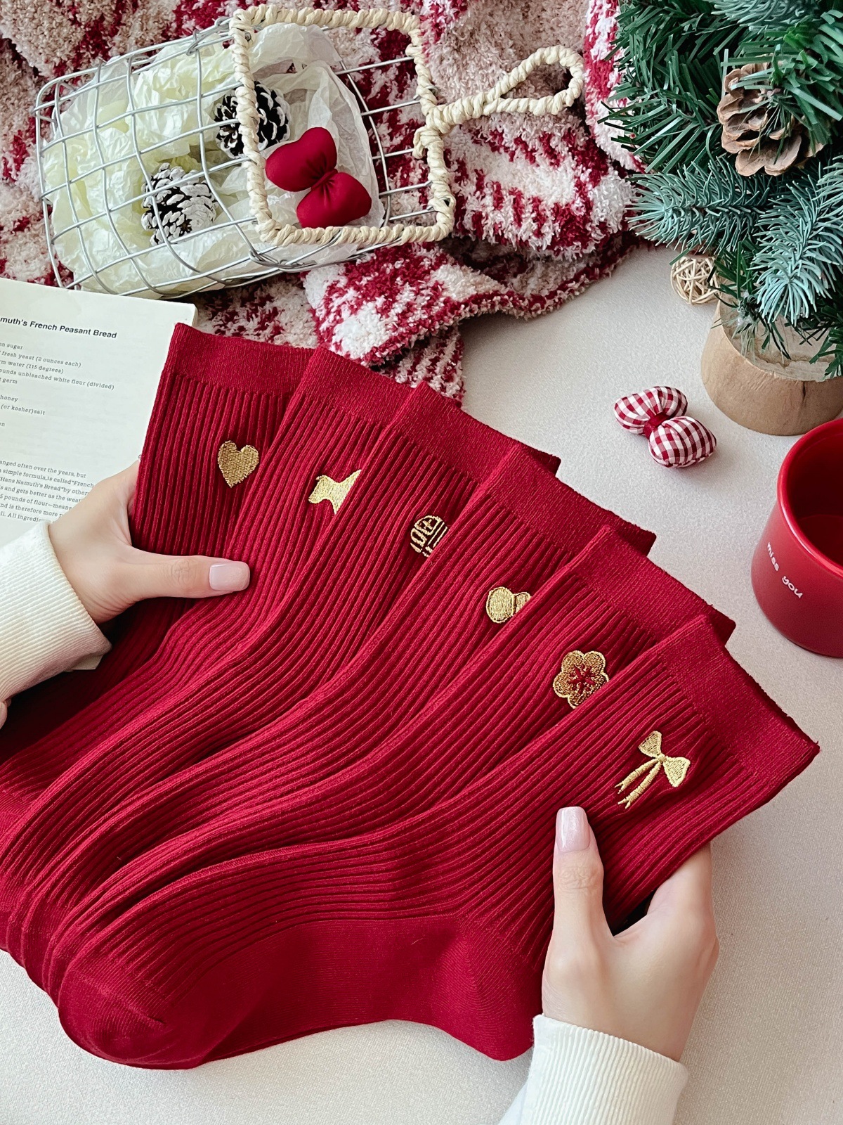 seven stars large red socks