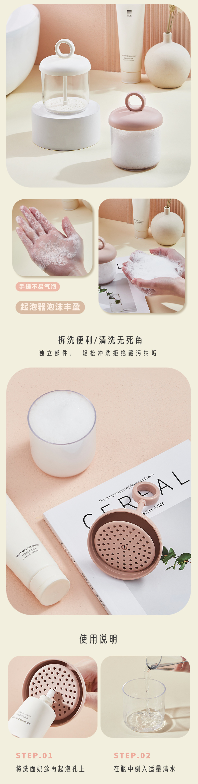 color: ivory white, grapefruit pink