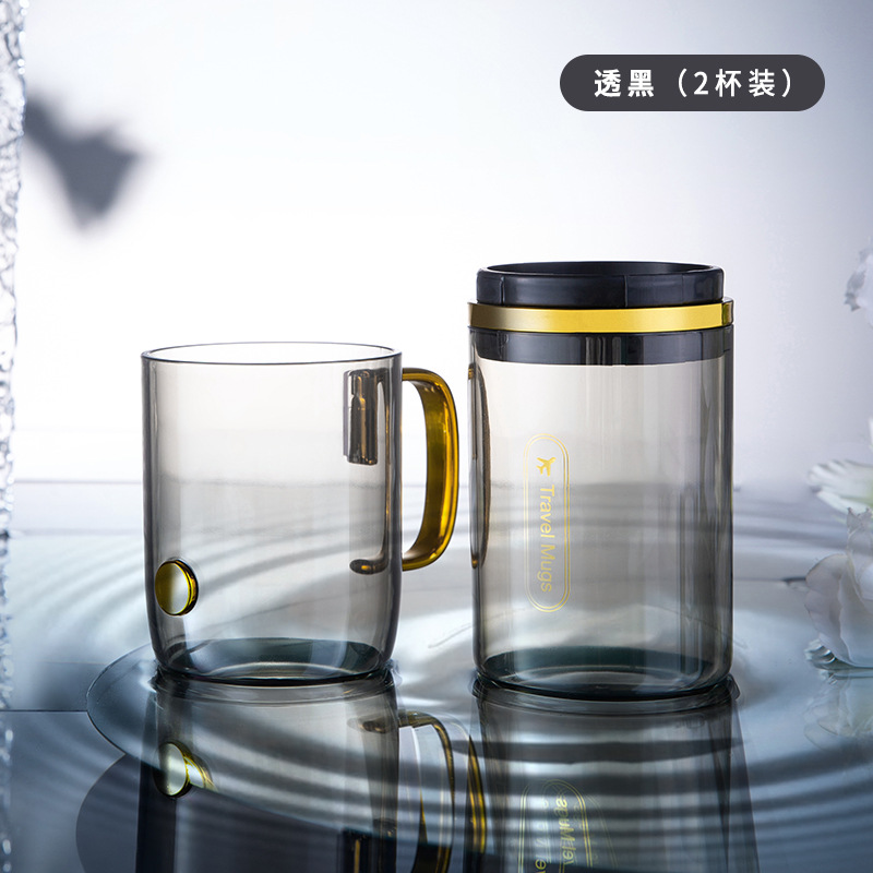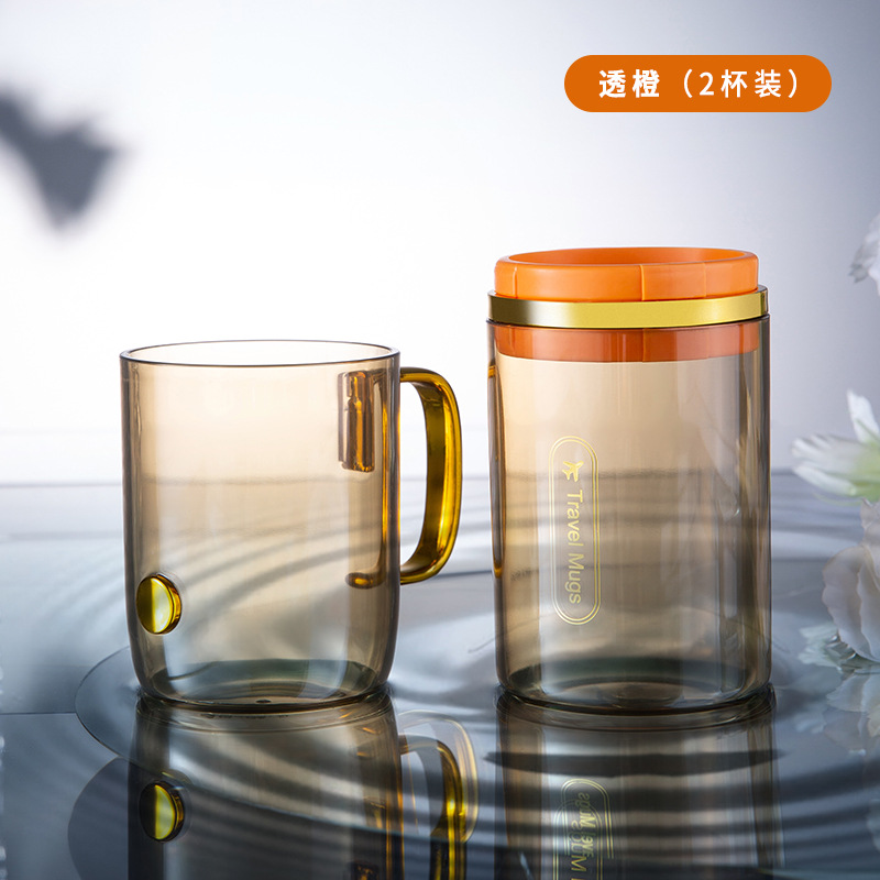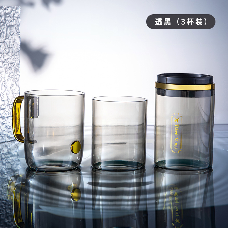 two cups of transparent orange, two cups of transparent black, three cups of transparent green, three cups of transparent black