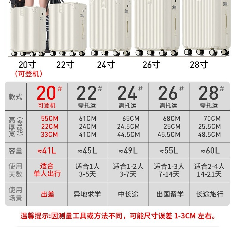 | 22-inch [folding cup holder + usb-c charging + tpe silent wheel + side hook]] | CN¥ 100.98 |