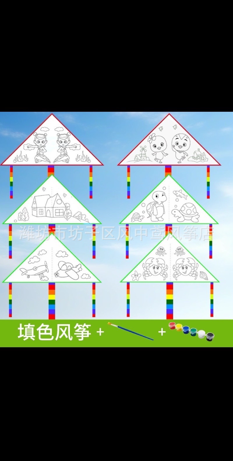 1-meter assorted coloring kite + paintbrush + six-color paint set