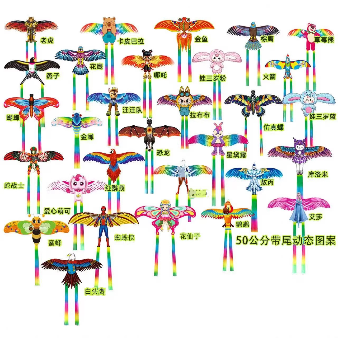 50cm dynamic kite mixed + cartoon telescopic fishing rod 50 m line
