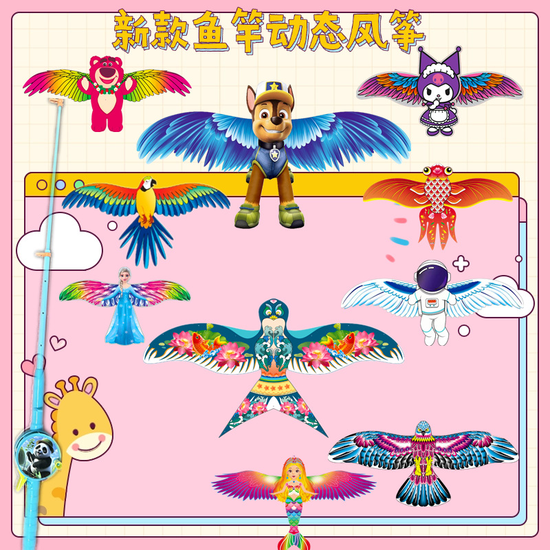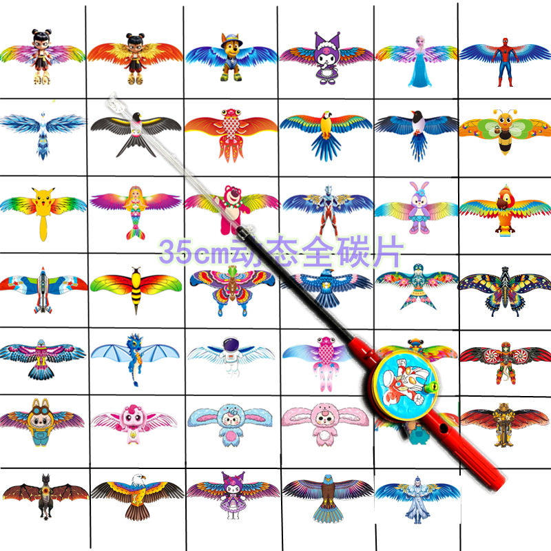 35cm dynamic kite mixed + cartoon telescopic fishing rod 50 m line