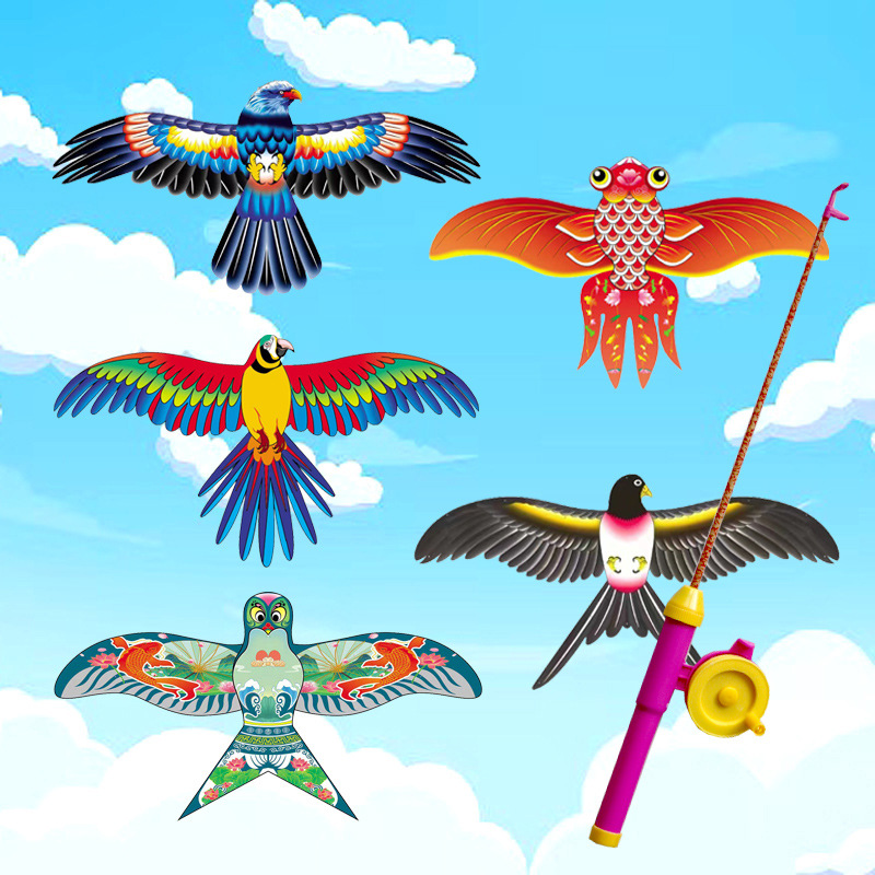 35*20 dynamic cartoon parrot + telescopic rod with line 50 m