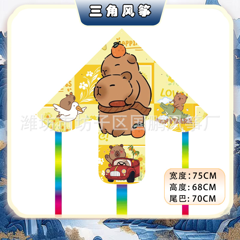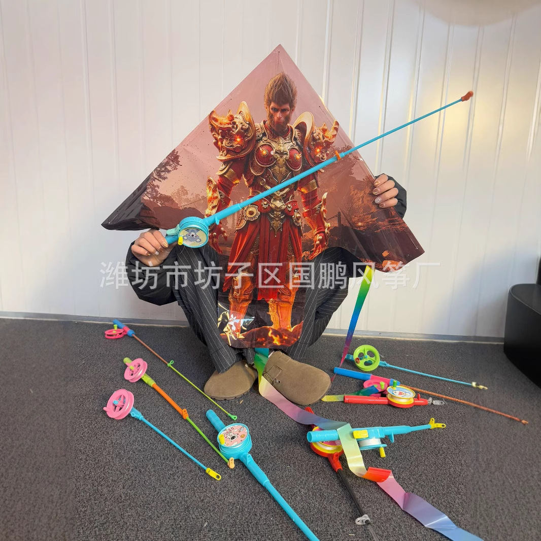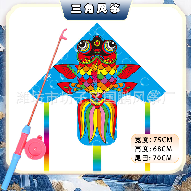 76.1cm triangle pe kite best-selling mix and match + cartoon push-type retractable fishing rod (50 m line for free)