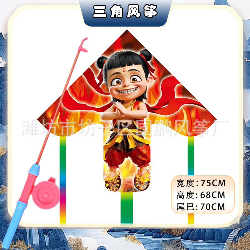 76.1cm triangle pe nezha + new color retractable fishing rod (50 m wire for free)