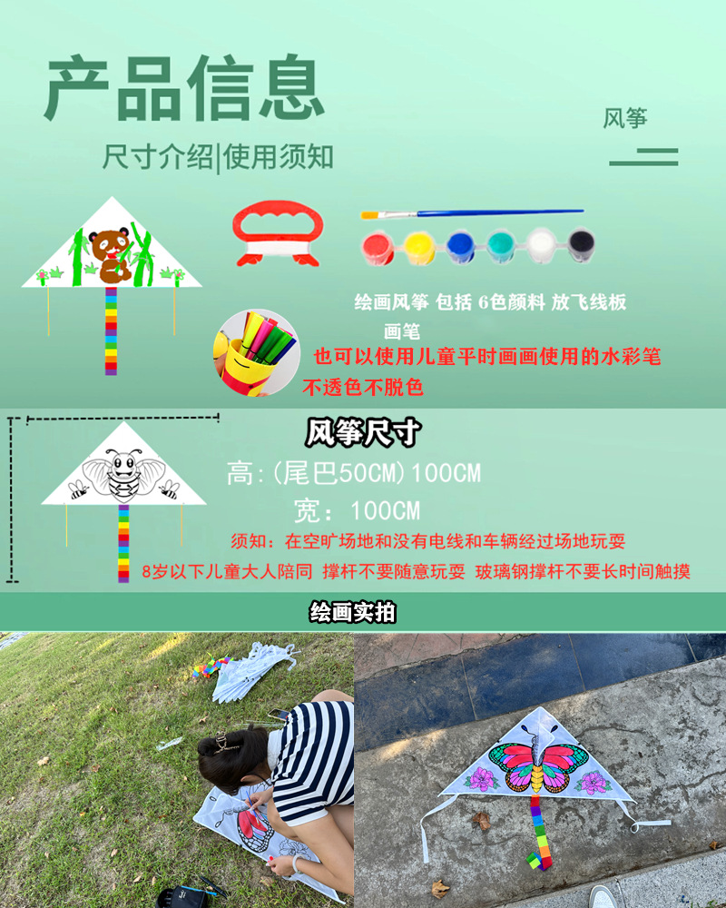 1 m color filling kite +50 m line board + brush + six color paint set