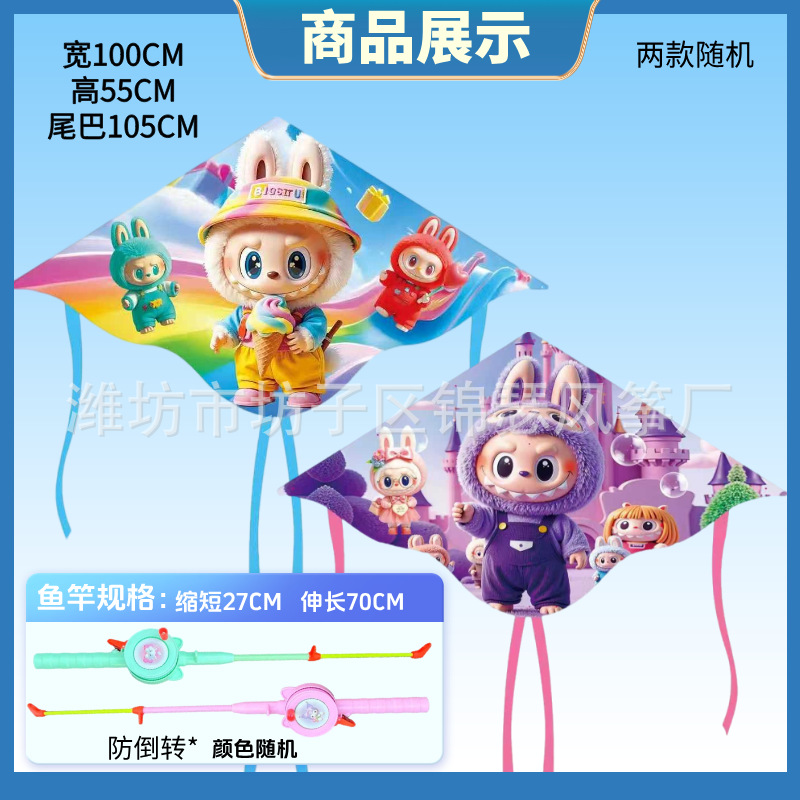 [double-tail plastic sheet] cartoon ao c + macaron telescopic fishing rod
