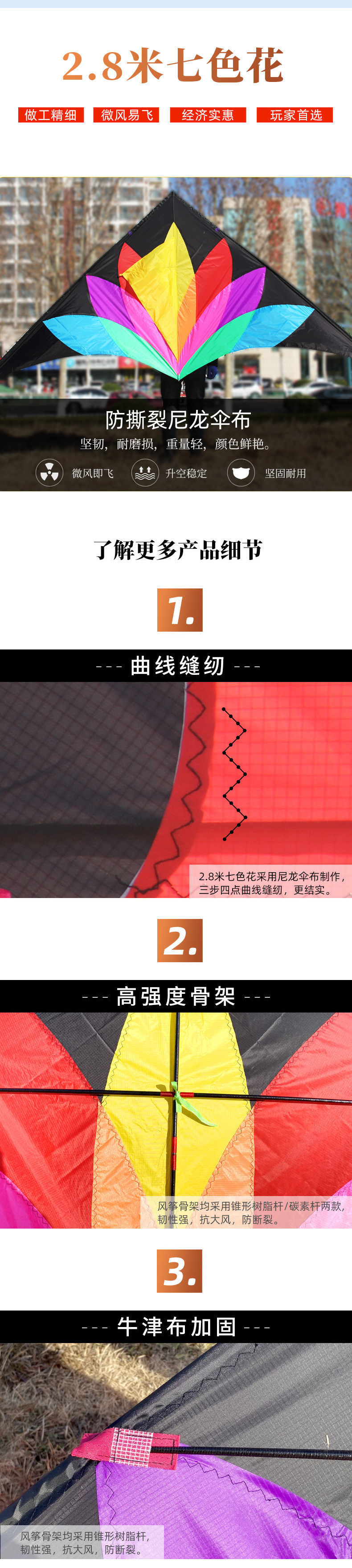 2.8 m carbon rod seven-color flower (kite only)