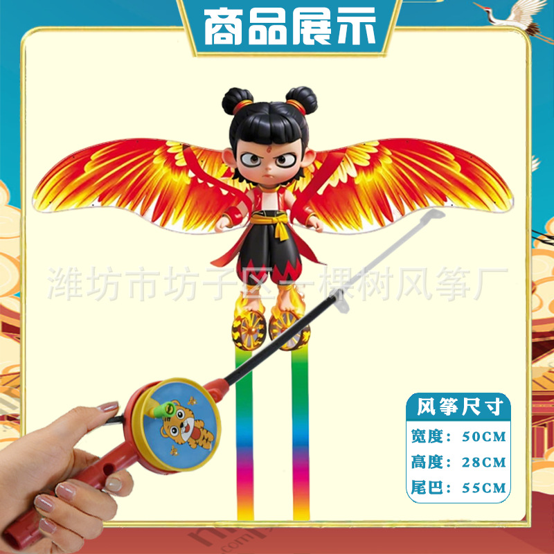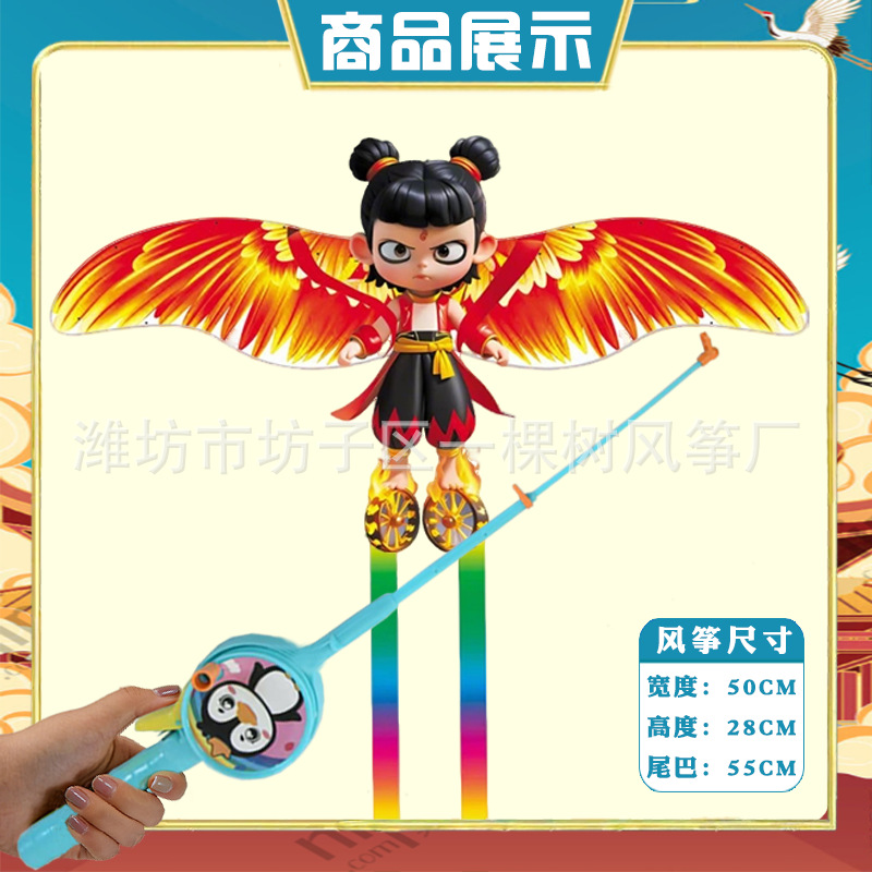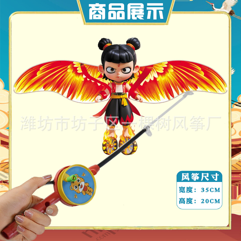 [35cm dynamic] nezha + red cartoon telescopic push-type fishing rod with line