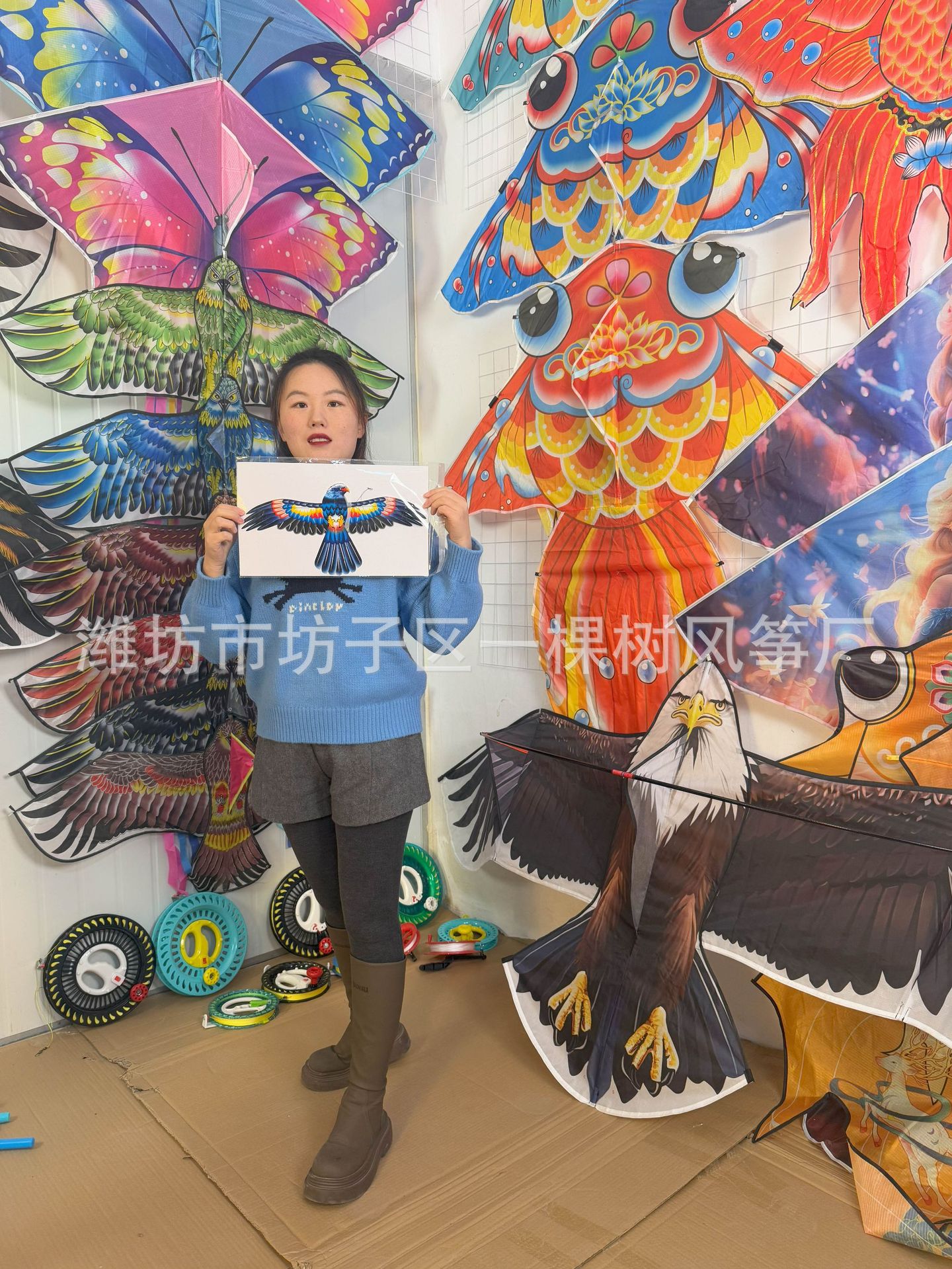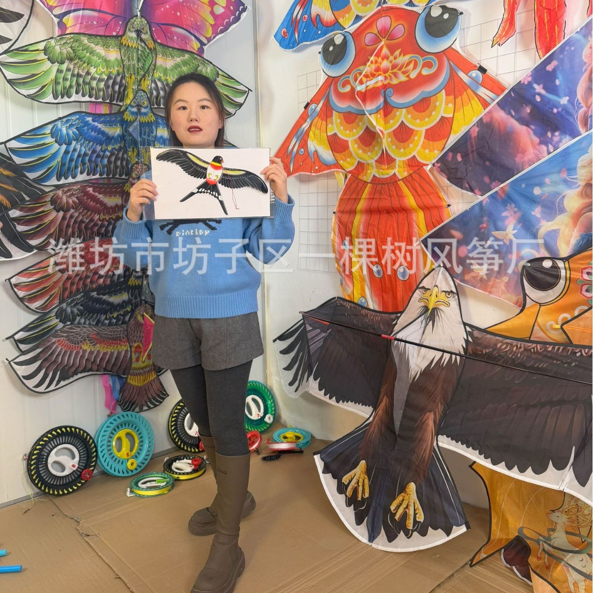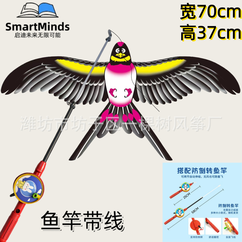 [35cm dynamic] simulation eagle + red cartoon telescopic push-type fishing rod with line