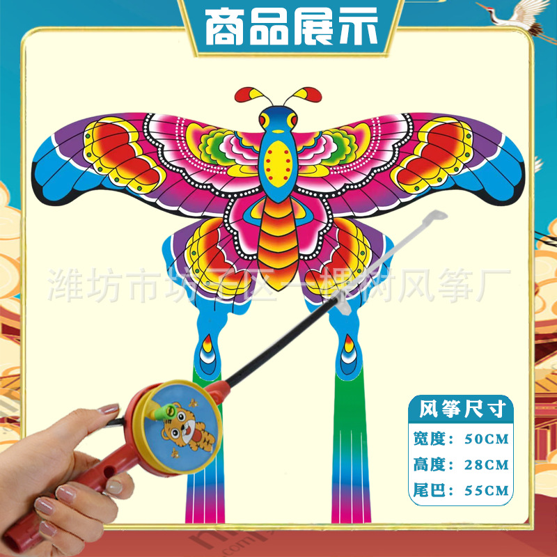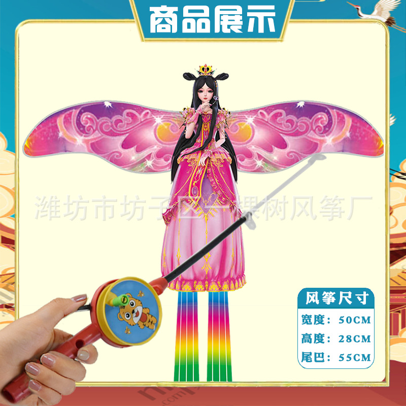 [35cm dynamic] butterfly fairy + red cartoon telescopic push-type fishing rod with line
