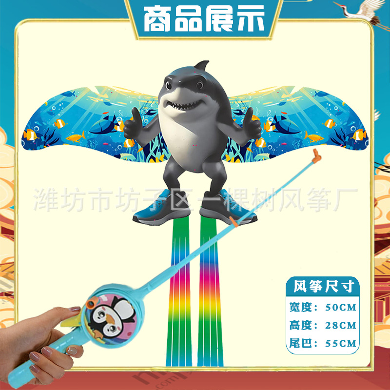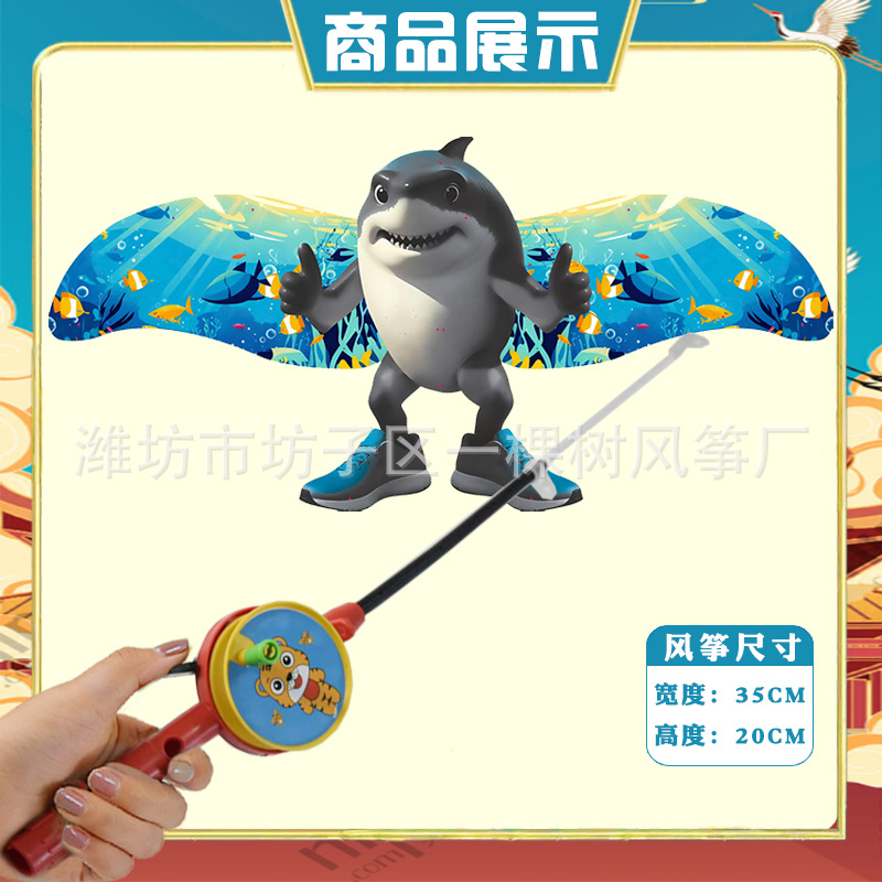 [35cm dynamic] shanhai jing shark + red cartoon telescopic push-type fishing rod with line