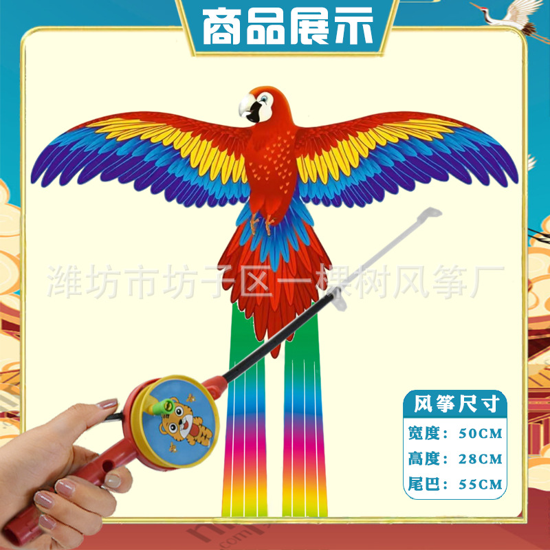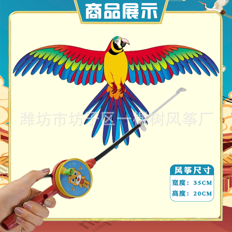 [35cm dynamic] parrot + red cartoon telescopic push-type fishing rod with line