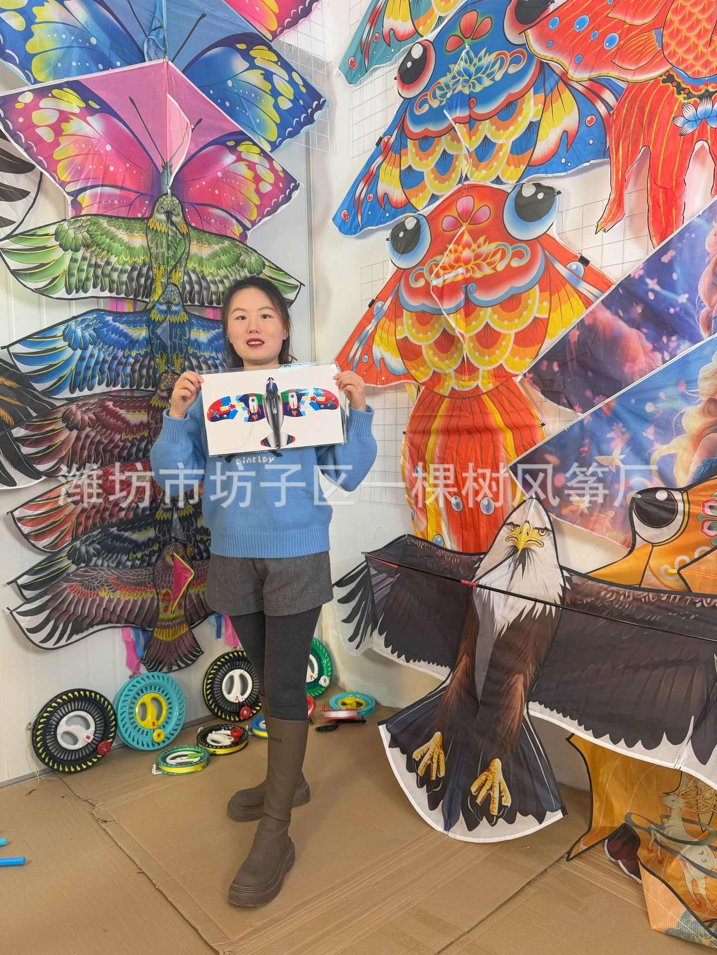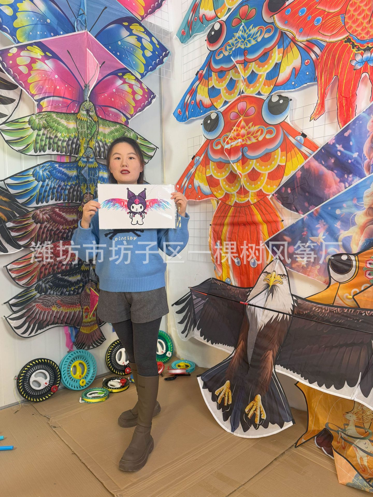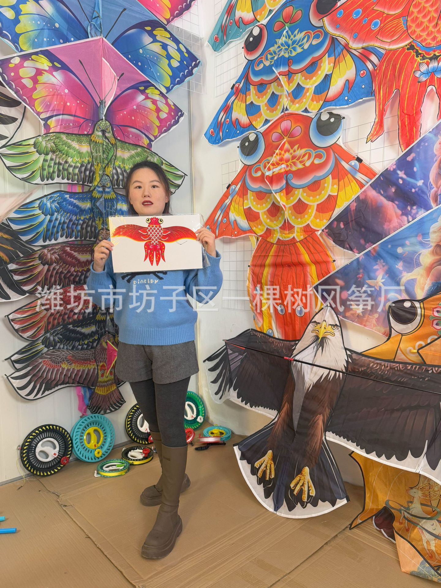 [dynamic 35cm] kite mixed hair + red cartoon telescopic push-type fishing rod with line