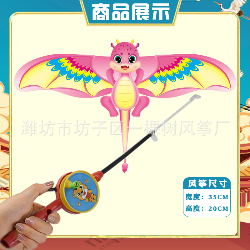 [35cm dynamic] small milk blocks dragon + red cartoon telescopic push-type fishing rod with line