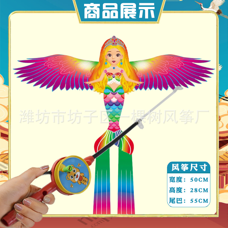 [35cm dynamic] dream mermaid + red cartoon telescopic push-type fishing rod with line