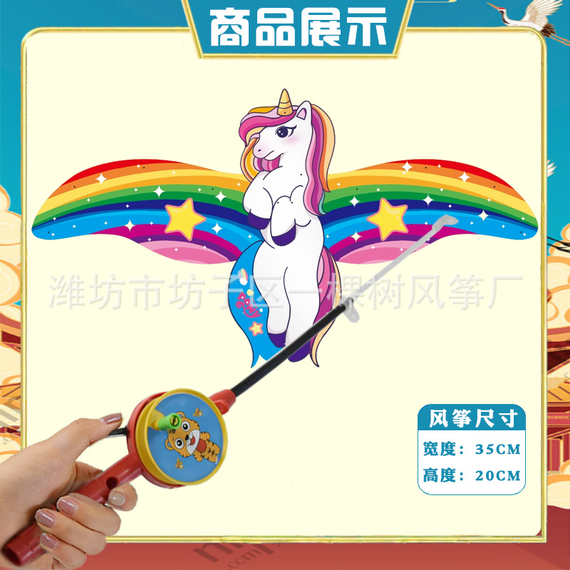 [35cm dynamic] colorful star horse + red cartoon telescopic push-type fishing rod with line
