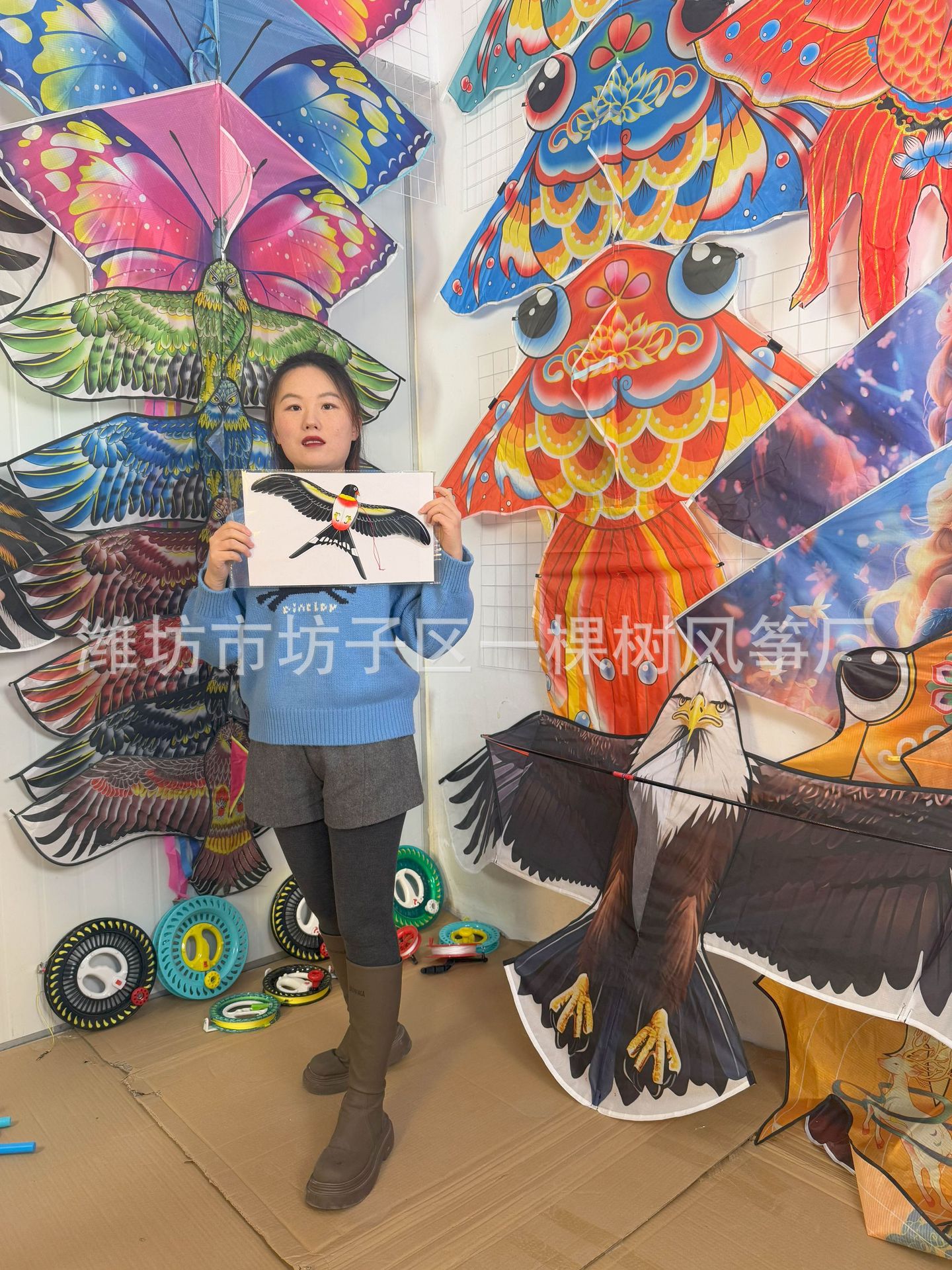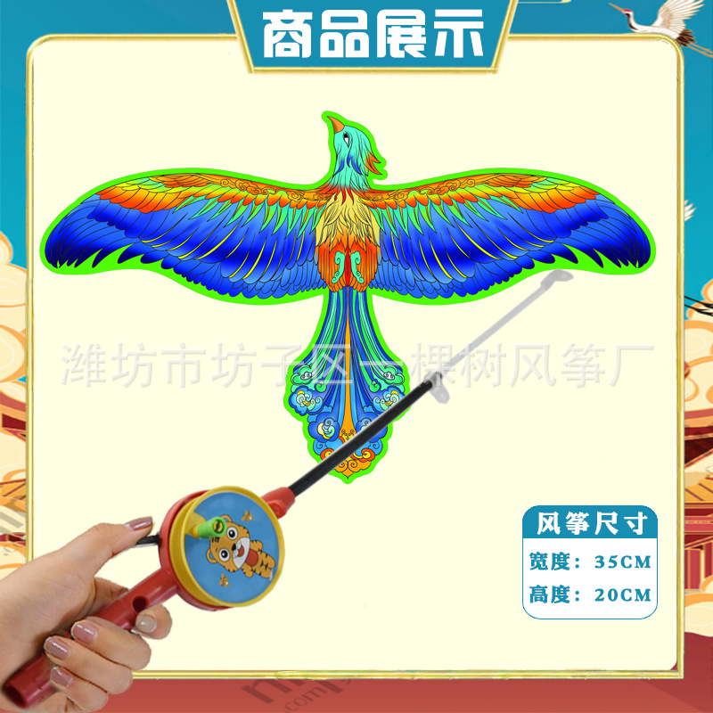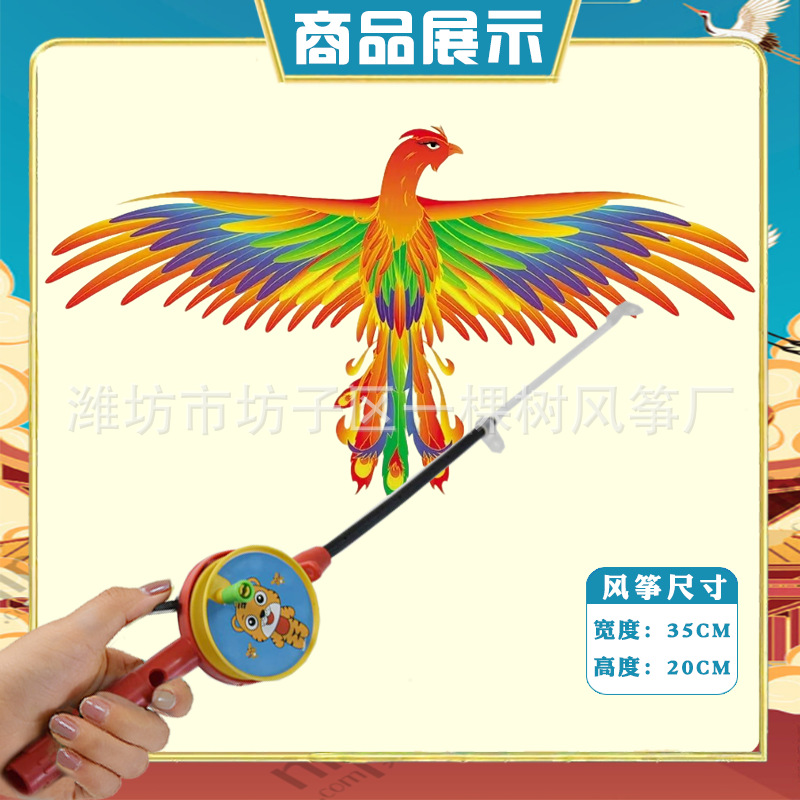 [35cm dynamic] blue phoenix bird + red cartoon telescopic push-type fishing rod with line
