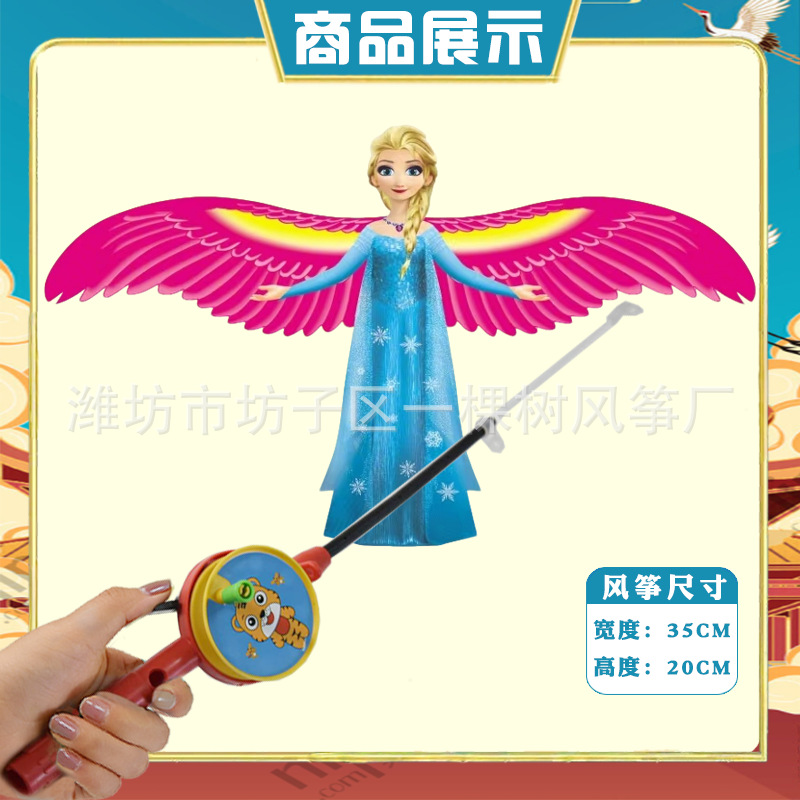 [35cm dynamic] blue princess elsa + red cartoon telescopic push-type fishing rod with line