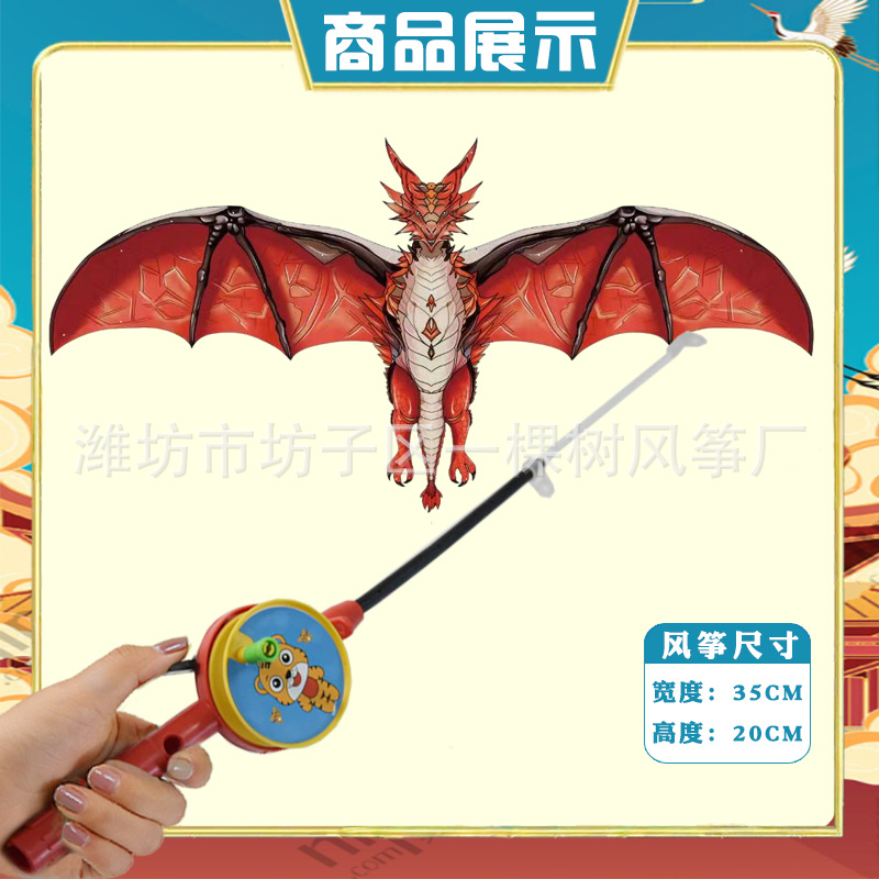 [35cm dynamic] fire dragon + red cartoon telescopic push-type fishing rod with line
