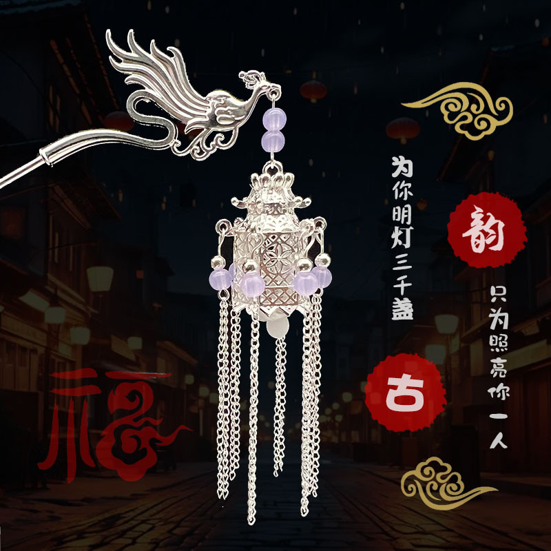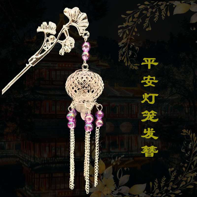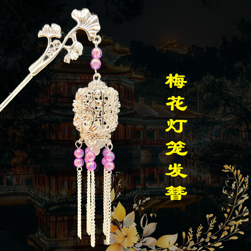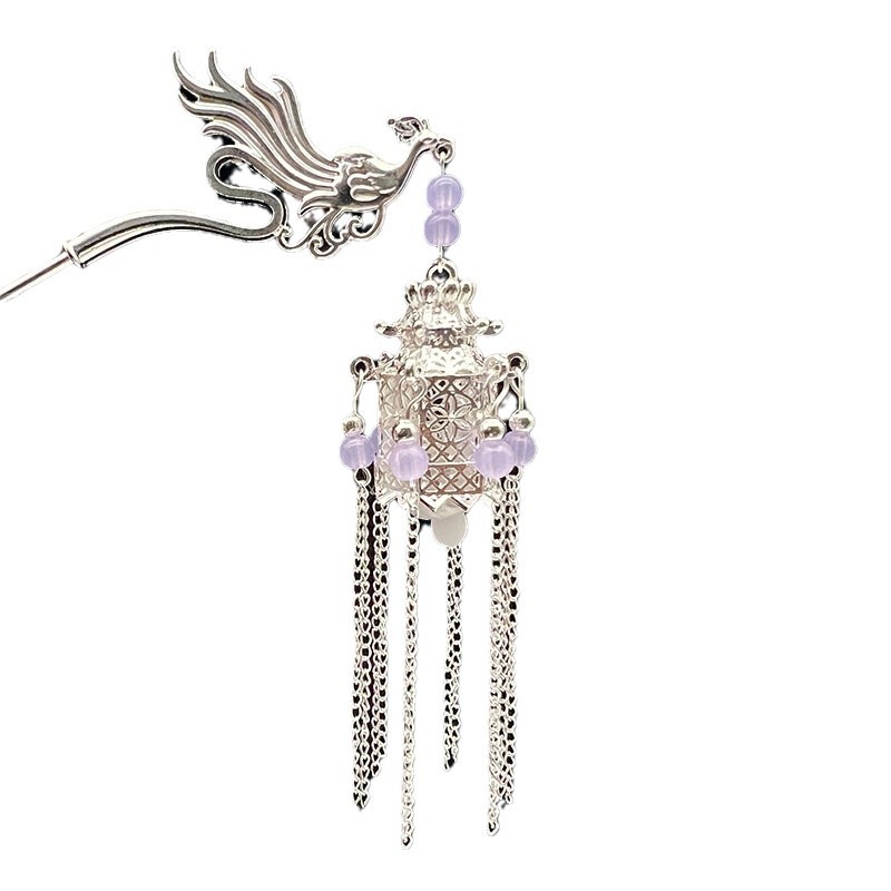 silver-purple beads-plum lamp hairpin